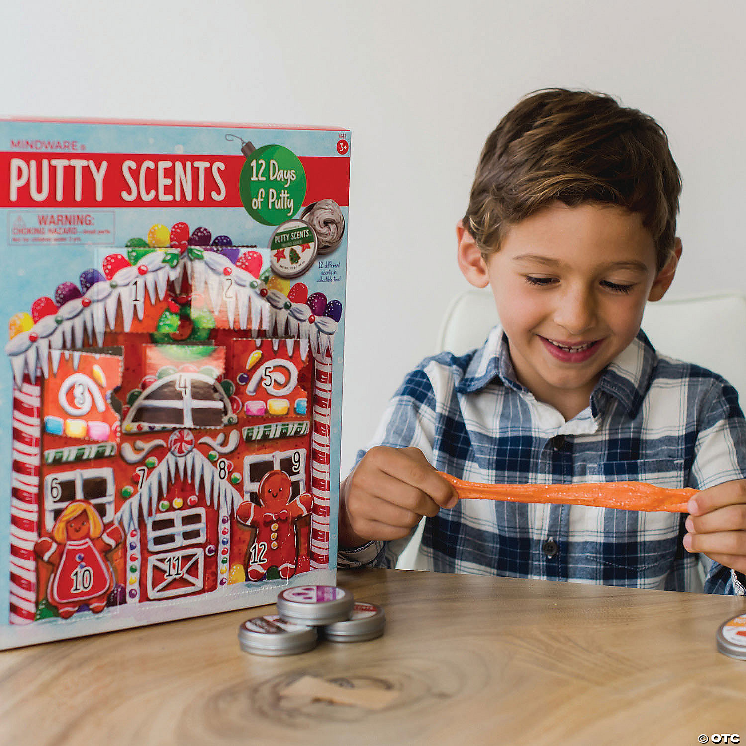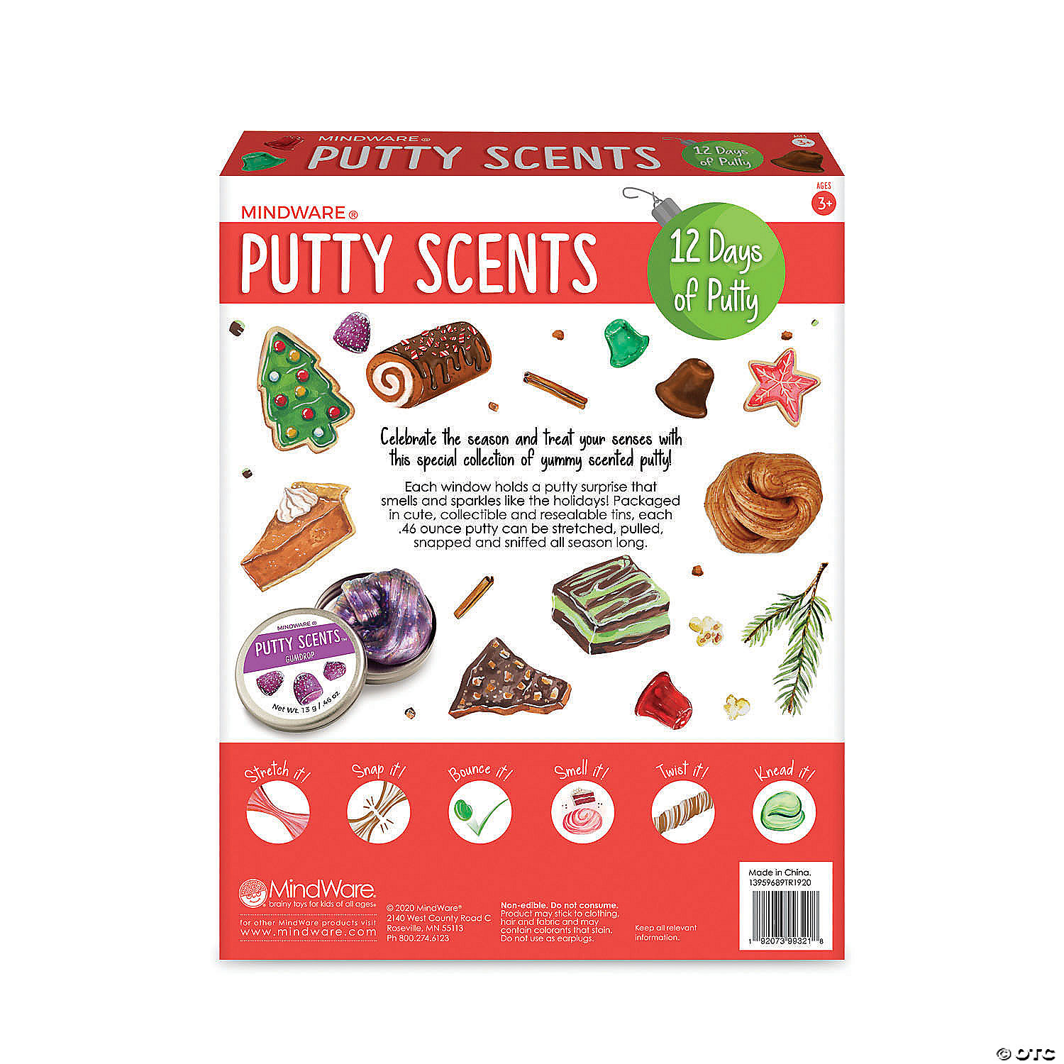 Celebrate the season with this interactive, 12-day countdown! Behind each of the 12 windows is a different collectable, resealable tin with .46 ounces of sparkly, scented putty inside. Putty Scents is an irresistible kind of playful putty loved by kids and adults, with high-quality colors and scents, delightful texture and long-lasting qualities. Make memories by using the calendar as a family or gift it to an individual child. With holiday-inspired scents like gumdrop and frosted cookie, you will be kneading, stretching, snapping, rolling and enjoying all season long.