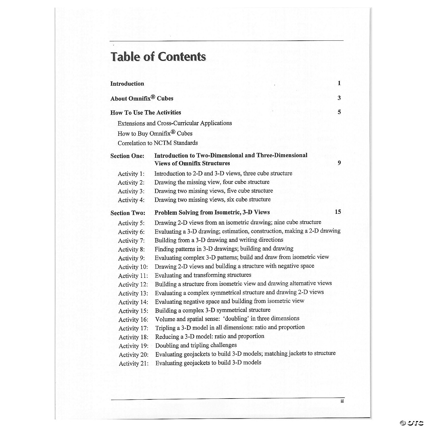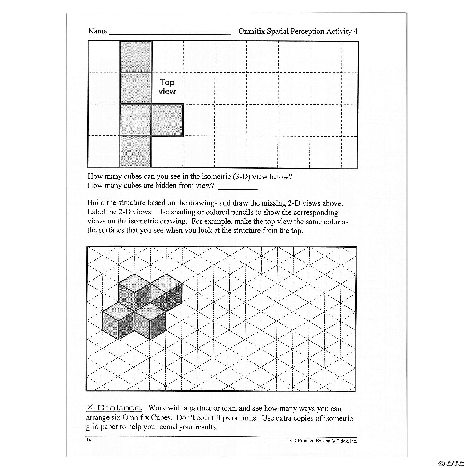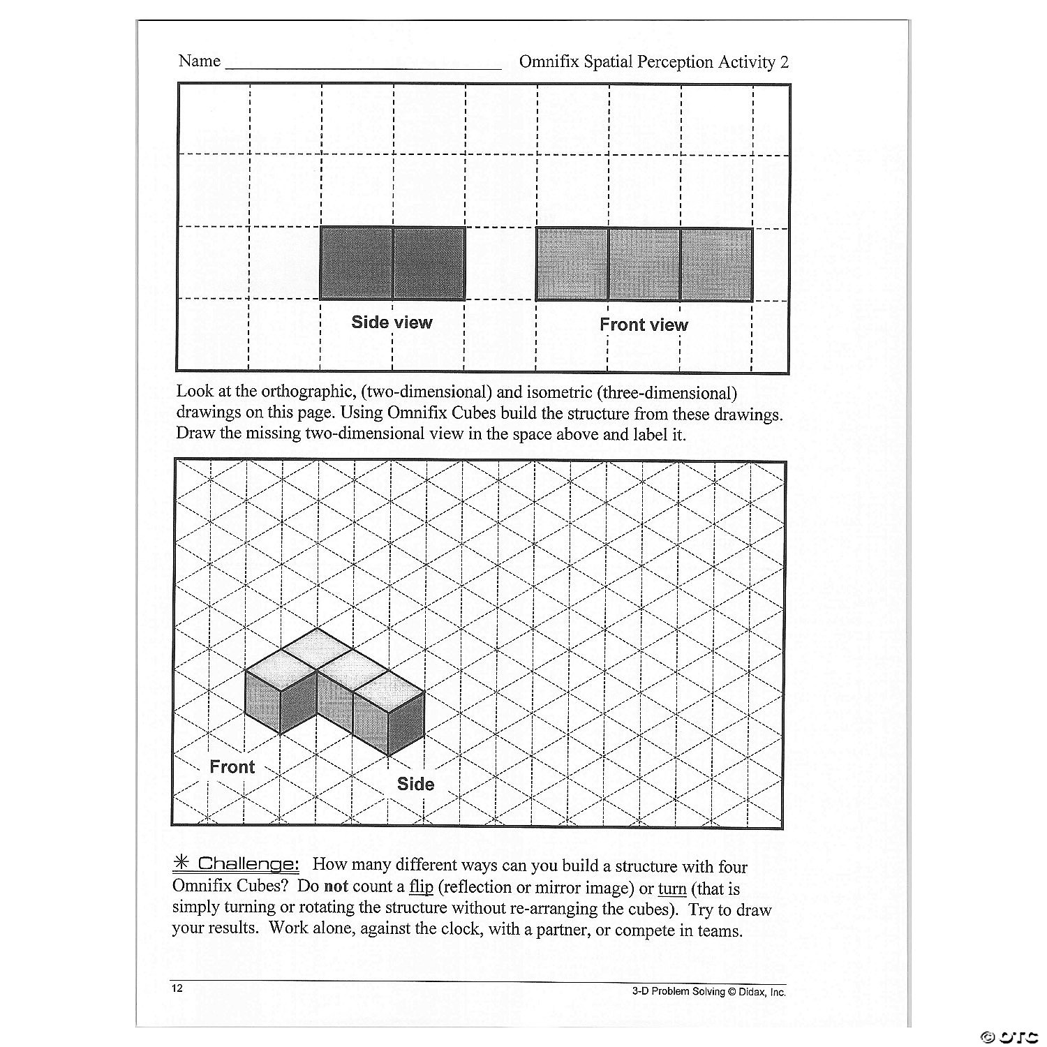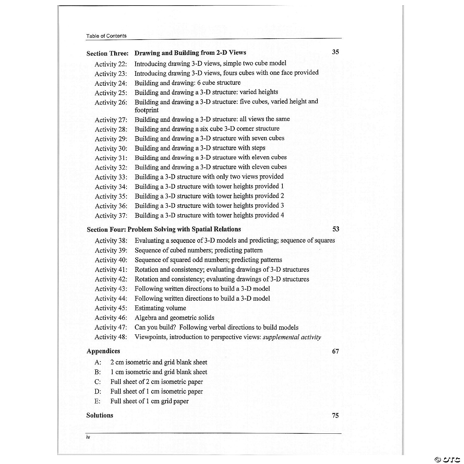 These hands-on activities for Omnifix Cubes supports the acquisition of spatial sense as well as the language of three-dimensional geometry. 96 pages.