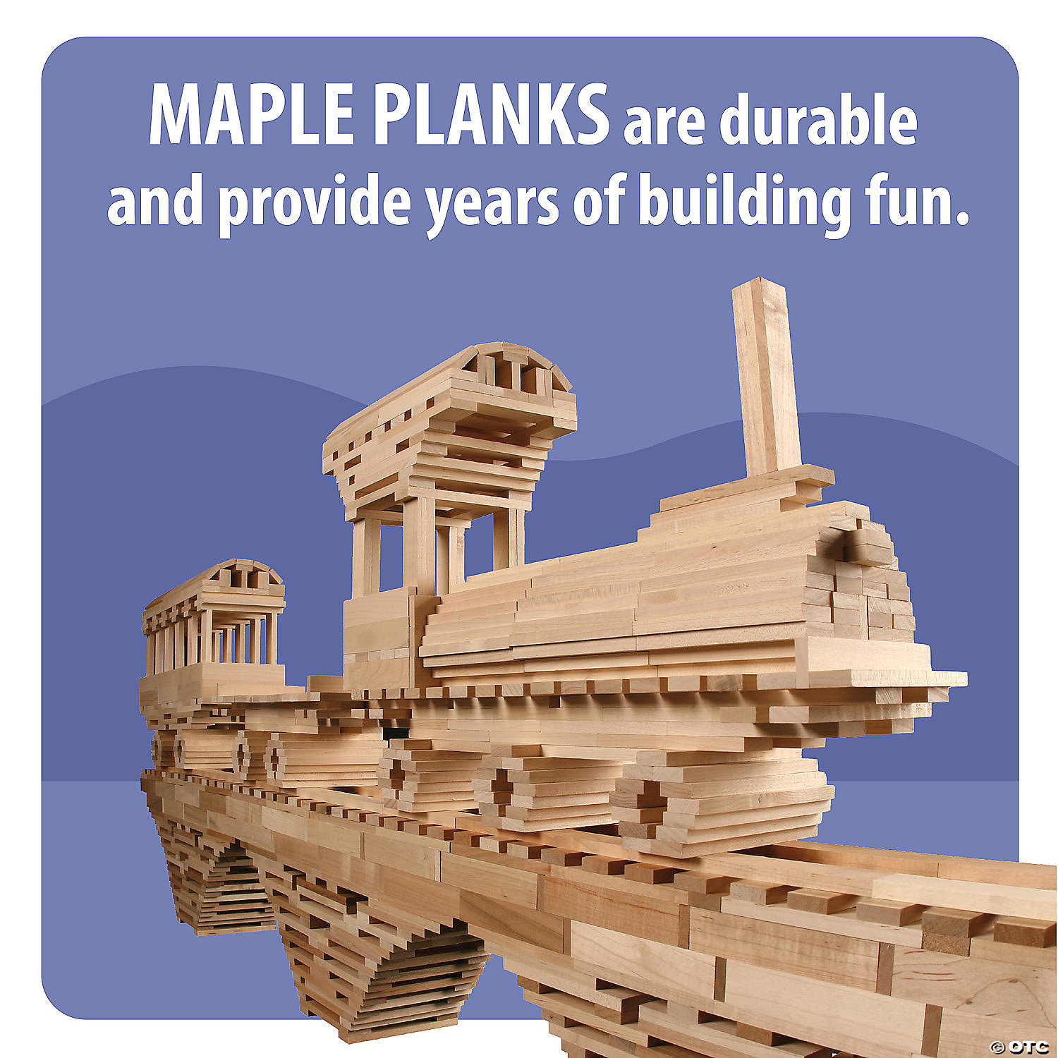Perfect for creating a KEVA building station in your classroom, our set of 800 KEVA Maple Planks are divided into two durable pop-open canvas tote bags. This convenient storage option allows you to stack and carry the filled bags with ease. This set also includes an idea booklet, four 10" x 10" laminated idea cards, and 16 KEVA balls.