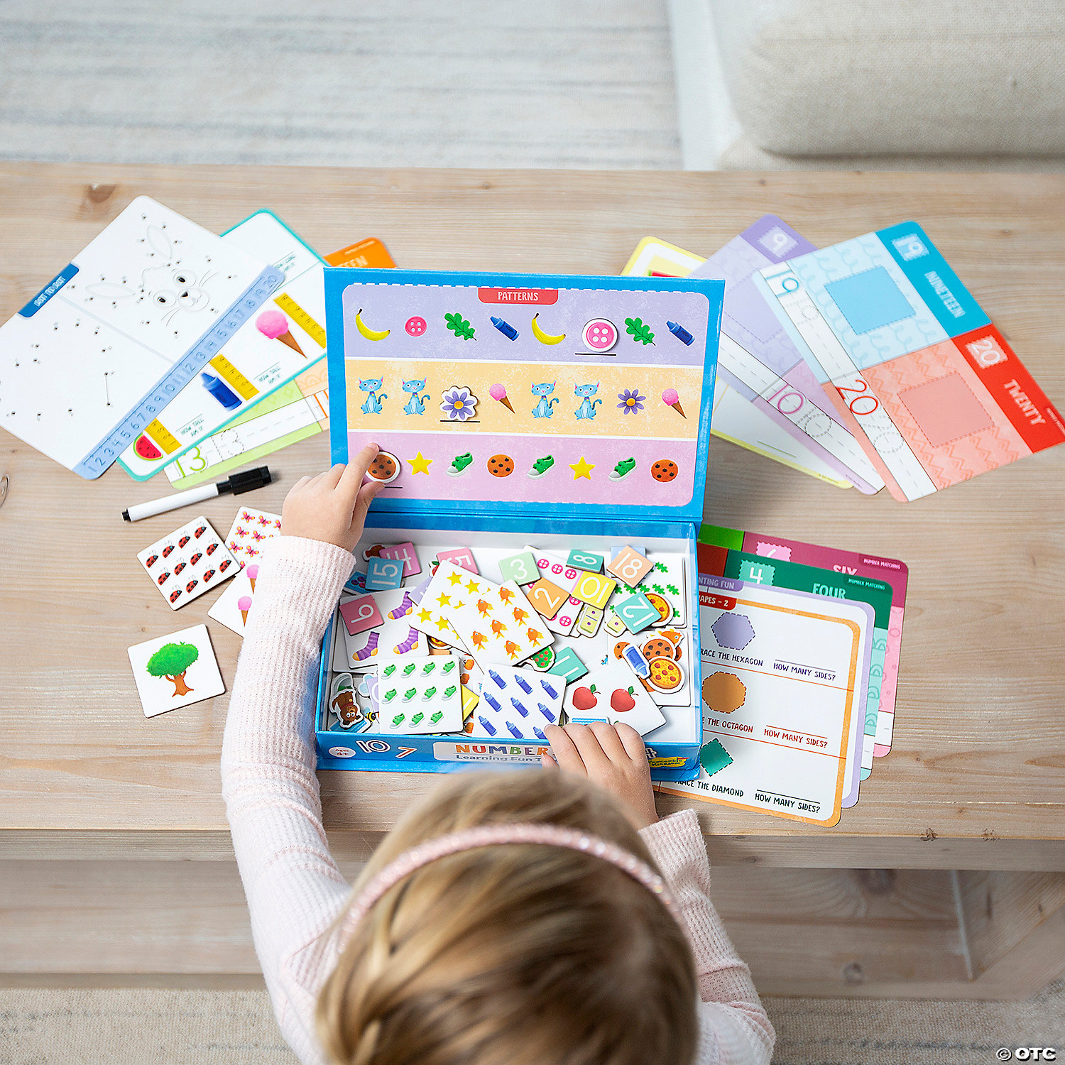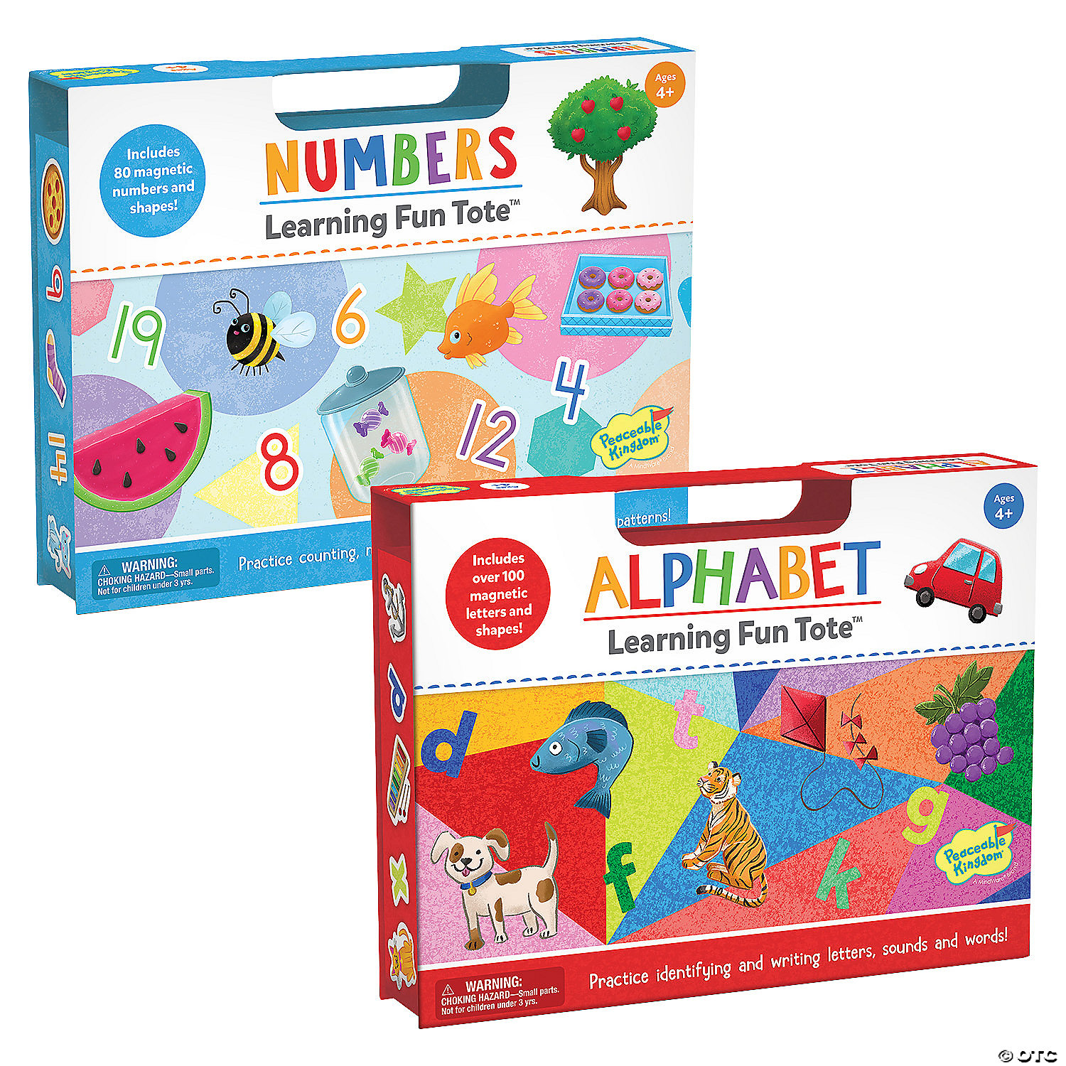 These teacher-designed educational resource kits are a bright, colorful way for children to learn about numbers and letters. Alphabet Tote helps kids recognize letters, sounds, vowels and other alphabet essentials. Numbers Tote teaches numbers, shapes, counting and more. Both kits include sturdy magnets, activity-packed learning sheets and dry erase surfaces to help early learners master basic math and reading skills while having fun!Includes:Alphabet Tote helps kids recognize letters, sounds, vowels and other alphabet essentials. Includes 106 magnets, 12 learning sheets, 4 Alphabet Fun sheets, 5 Sight Word sheets, 2 Fun with Sounds sheets, 1 Name Writing/Letter Line sheet, 1 Rhyme Time sheet, 1 dry erase marker and parent guide.Numbers Tote teaches numbers, shapes, counting and more. Includes 80 magnets, 11 learning sheets, 5 Number Matching sheets, 1 Patterns sheet, 2 Counting Fun sheets, 1 Dot to Dot sheet, 1 Fun with Shapes sheet, 1 Measuring Fun/Number Line sheet, 1 dry erase marker and parent guide.• Practice identifying and writing letters, sounds and words with Alphabet Tote and counting, measuring, tracing shapes and making patterns with Numbers Tote• Build fine motor skills • Master important number and alphabet concepts