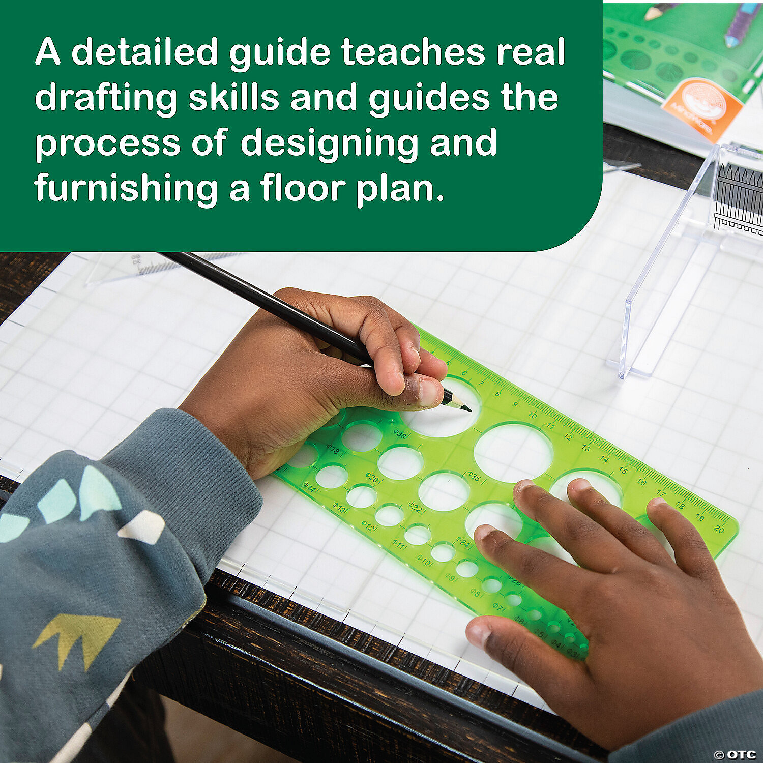 • Includes a drawing triangle, circle template, drawing compass, 10 colored pencils, eraser, dry erase marker, glue stick, acrylic fences, vinyl fence clings, tracing paper, grid paper, plastic design surface, and an illustrated booklet