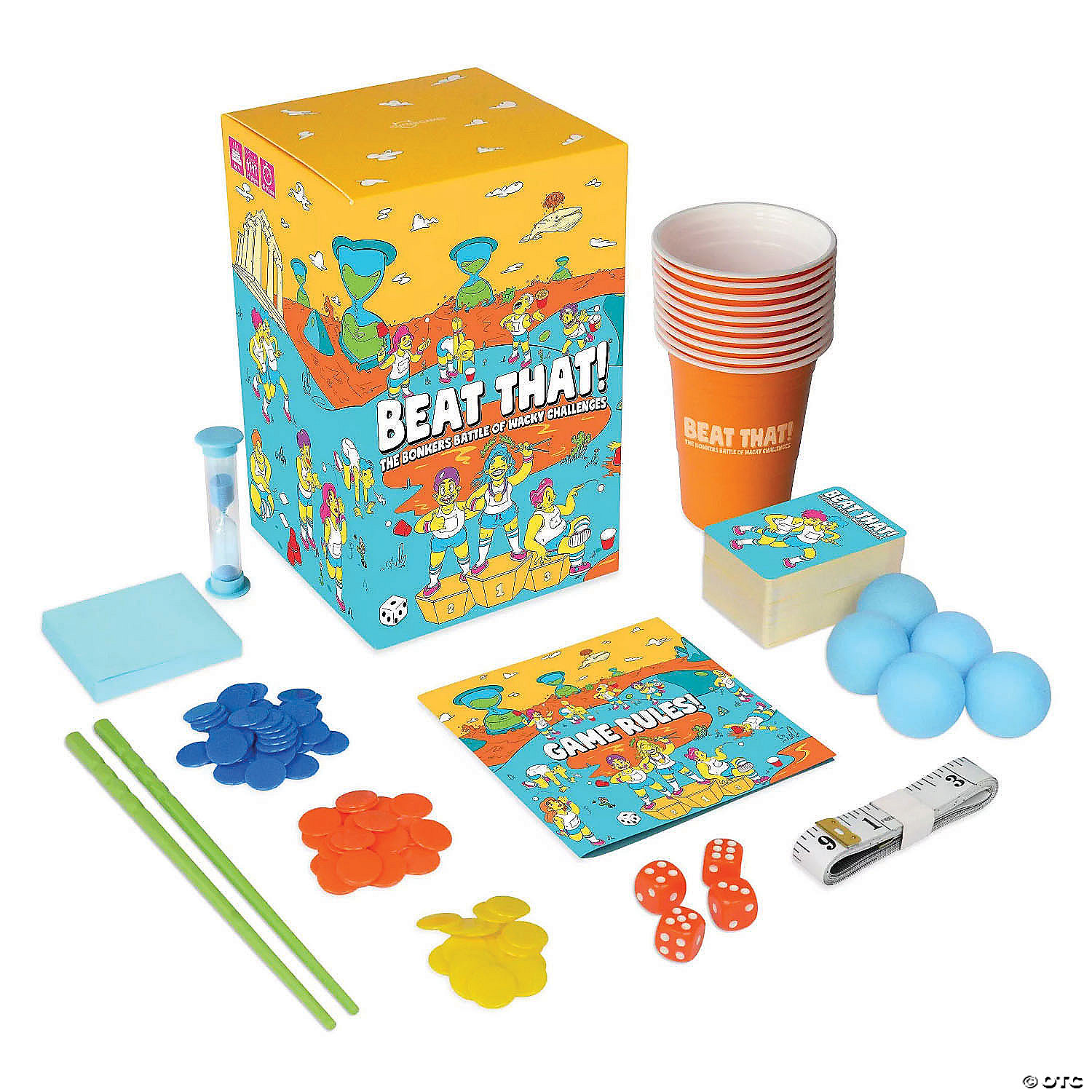 • Limber up and prepare to bounce, flip, stack, hop, roll, blow, balance, and catapult your way to victory! Win points by betting on your ability to successfully complete a series of ridiculous dexterity-based family games for game night