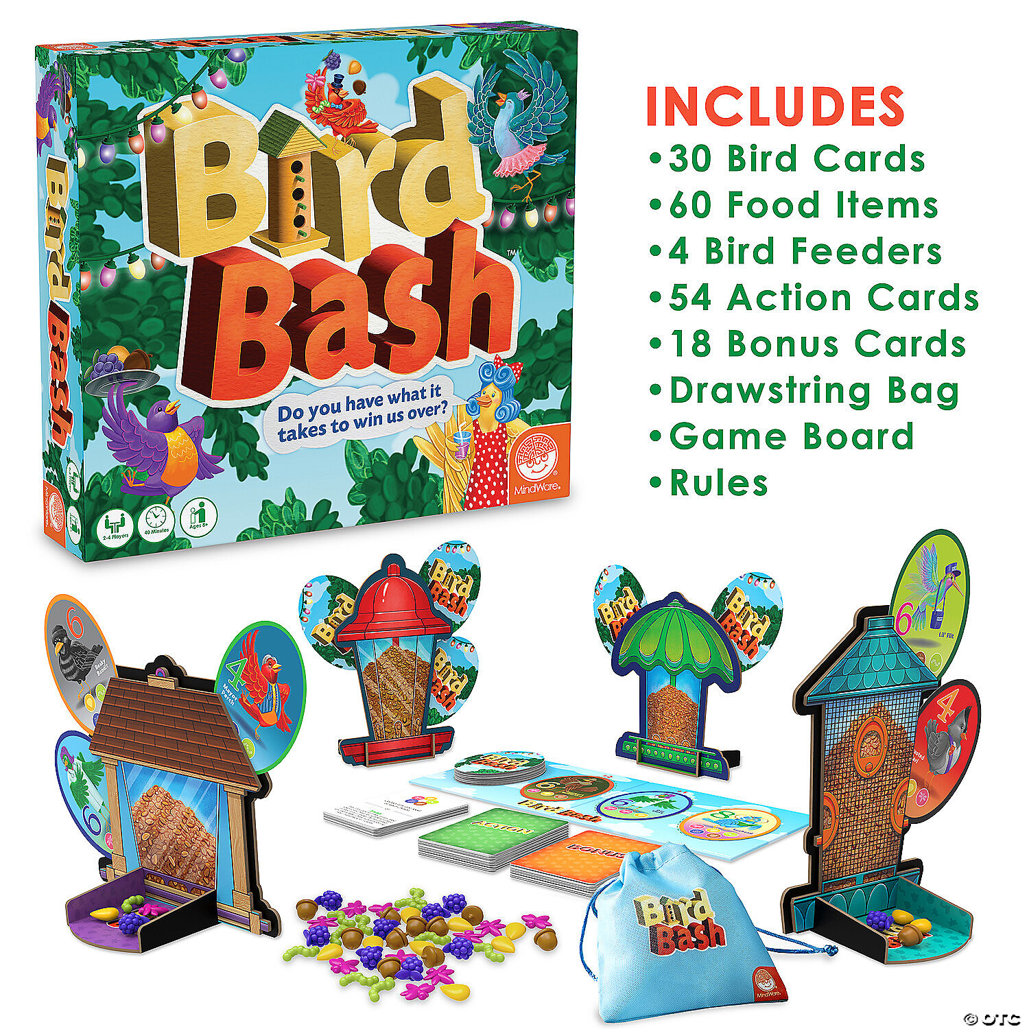 Bring your whole flock together to explore the world of birds! Well-suited for classroom games as well as general board games for kids, Bird Bash improves critical thinking, strategic planning and problem-solving skills, providing an interactive and educational gameplay experience for kids. High-quality materials and colorful artwork help to make Bird Bash a favorite family board game for years to come! Each player of this classic board game tries to throw the best bird bash around by serving up tasty treats that attract birds to their feeder. They collect birds (and points) by playing wild cards and action cards to gather their favorite foods. The player with the most points at the end of the game wins in this party game that rules the roost!