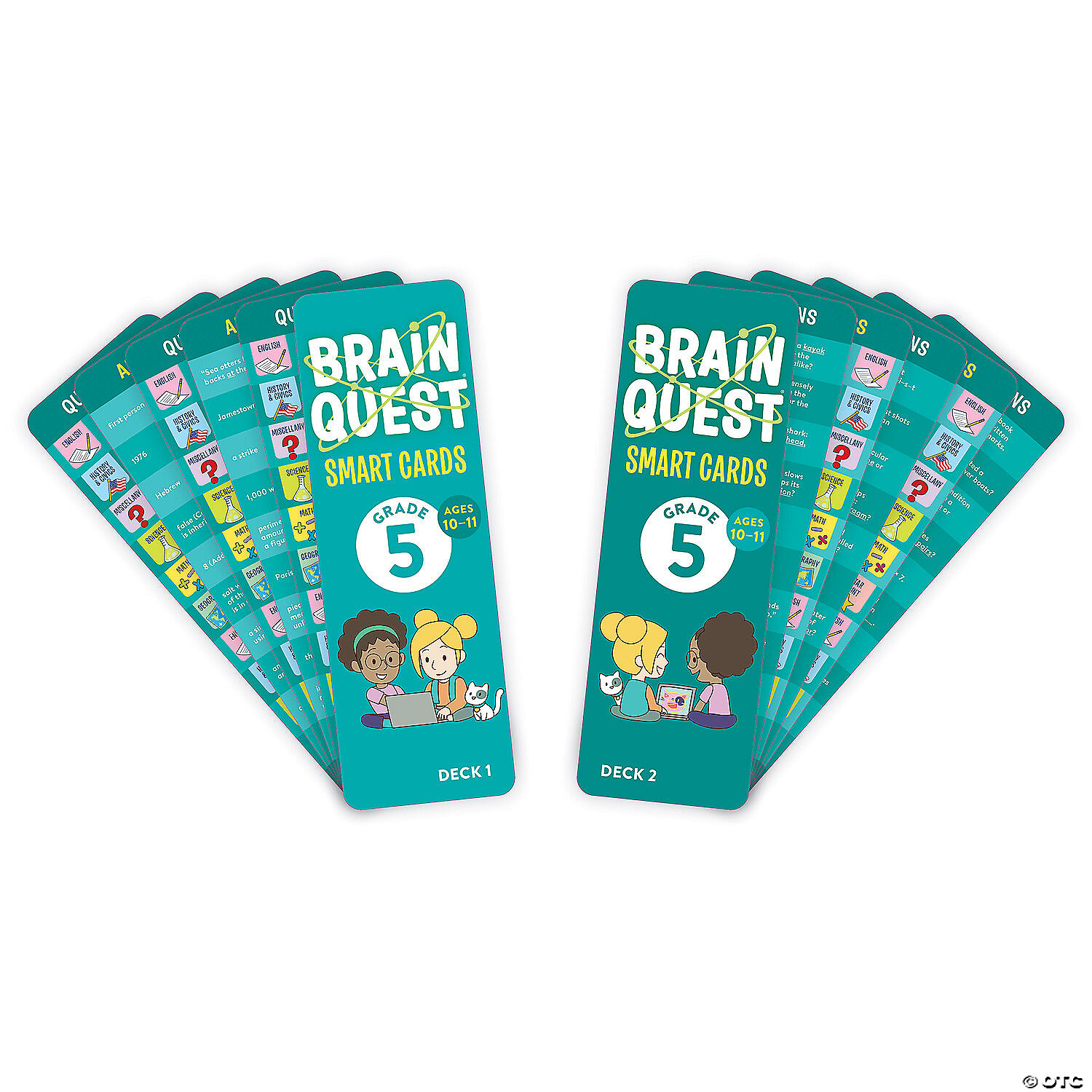 It’s fun to be smart! Now updated with a technology section, this set of two multi-subject card decks will make learning exciting for fifth graders everywhere. Loved by kids and teacher approved, and featuring hundreds of questions based on math, science, English, History, Geography, and more to reinforce classroom learning with a fun, fast-paced game.