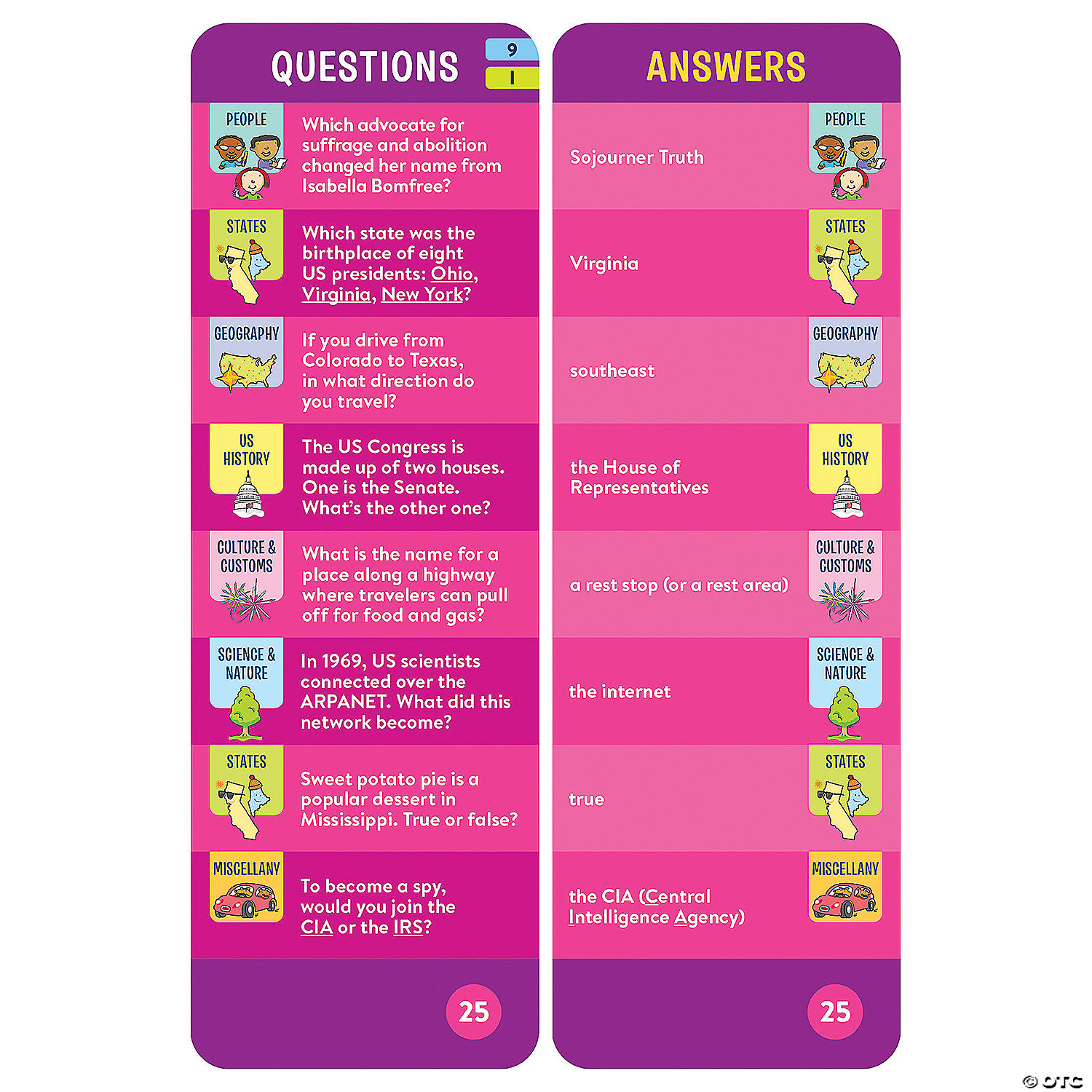 • Two full-color Q&A decks in a reusable flip-top storage box