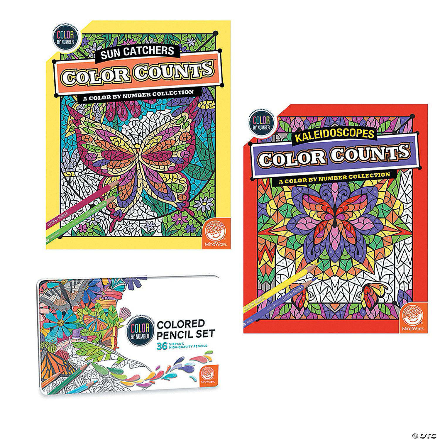 Color By Number Color Counts: Kaleidoscopes and Sun Catchers Set of 2 With Pencils