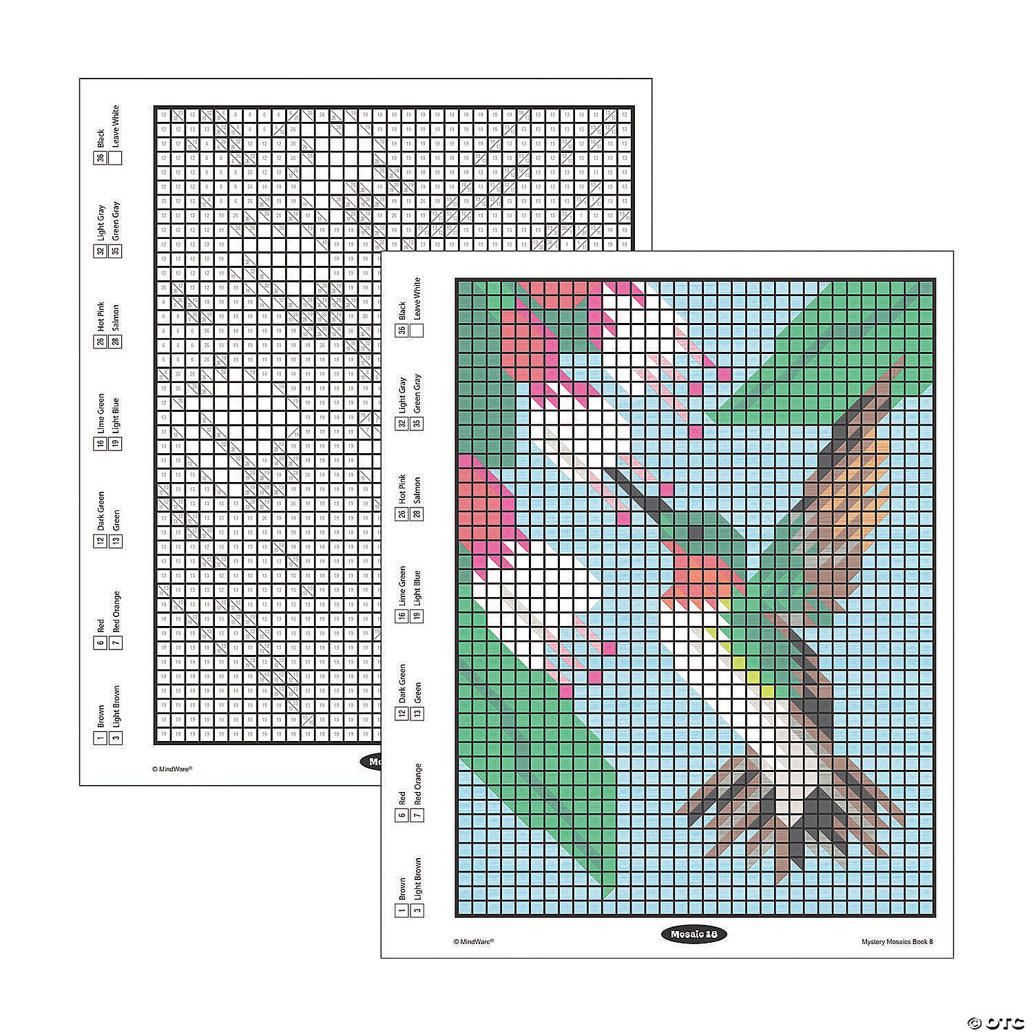 Designed to build the visual perception skills of the most creative puzzlers, Mystery Mosaics: Book 8 is filled with 18 amazing images disguised as numbered squares. At first glance, you will have absolutely no clue what each completed picture might turn out to be...follow the number guide, apply color, and watch an incredible mosaic design take shape! Featuring 18 perforated pages including 4 fold-out, 10" x 15" double-page spreads, this new book pairs perfectly with our brilliantly-hued, 36-count Colored Pencil Set (sold separately). The book and pencils are printed with coordinating numbers to make your coloring experience even more relaxing and enjoyable. Download Sample Page