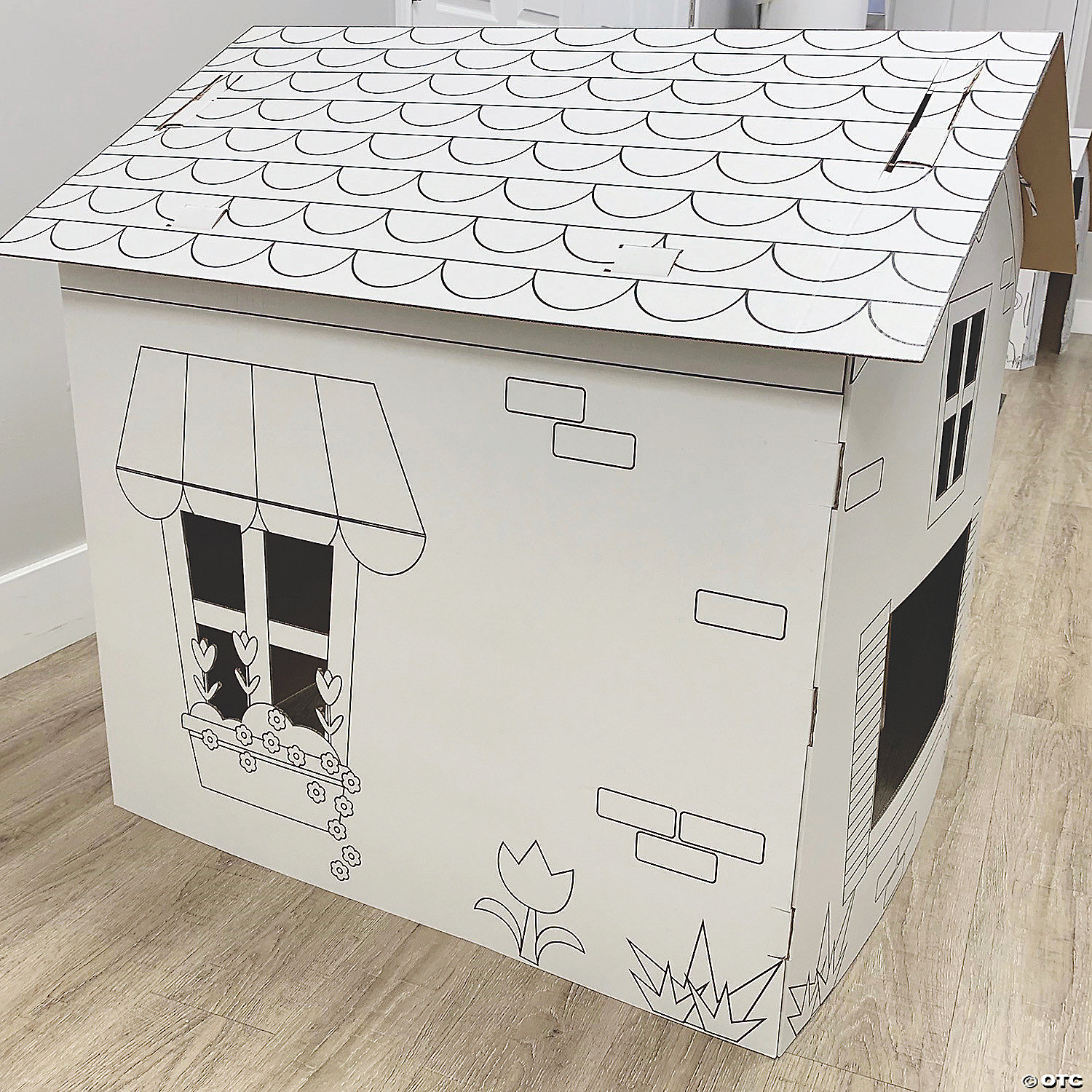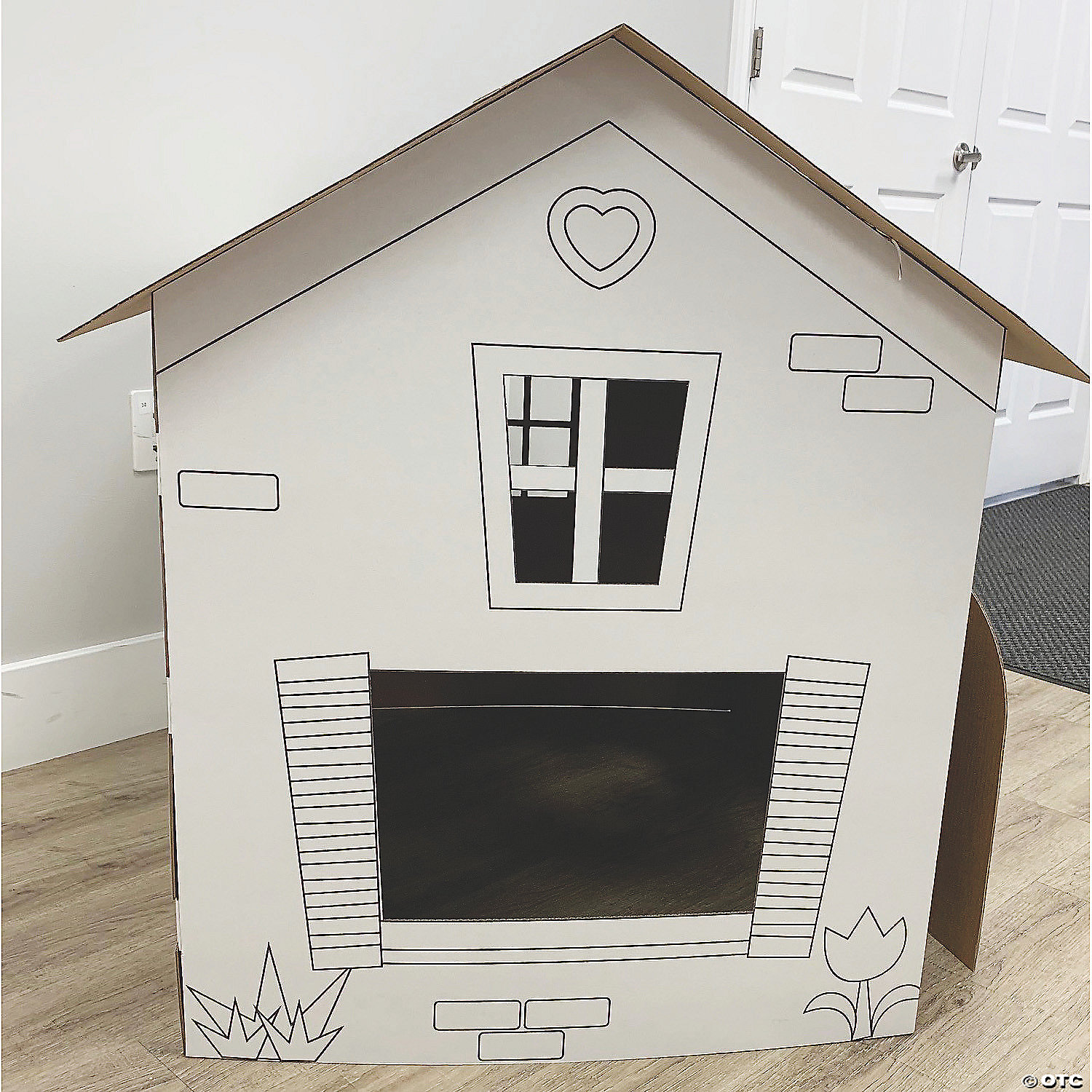 Build up the fun with this large kids craft! This playhouse says "WELCOME" on the door and has cute flowers at the windows and around the base. Use your own markers or crayons to color it in, then assemble it and get ready to play house! Cardboard. 26" x 34" x 36" Assembly required.Special Shipping Information: This item ships separately from other items in your order. This item cannot ship to a P.O. Box. This item may be subject to additional processing days.• ITEM IS NOT ELIGIBLE FOR EXPEDITED SHIPPING.