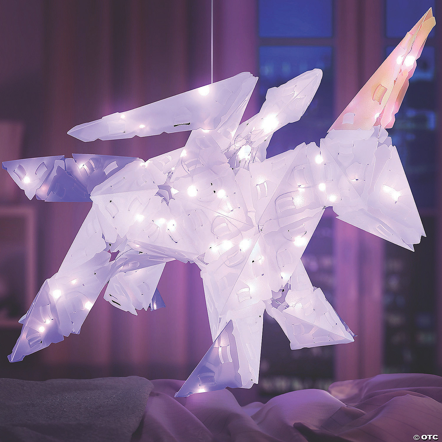 Creatto projects let kids create 3D designs using plastic squares. After they've constructed their origami-like structures with the flexible, interlocking tiles, fill them with a string of LED lights! Design and craft illuminated creatures that literally light up your life. Creatto projects are wonderful, screen-free activities that keep kids occupied for hours. Follow the instructions to build one, then disassemble and try another. The Sparkle Unicorn and Friends set comes with instructions and supplies to build a unicorn, bunny, polar bear and ballerina. All skill levels can get involved with the illustrated manual and easy, step-by-step instructions. The possibilities are limitless, and the result is dazzling! • Creatto Sparkle Unicorn and Friends Kit includes flexible tiles, LED lights, and instructions• Encourages problem solving, fine motor skills, patience, and innovation• Models measure up to 3 ft. long• Lights powered by USB cable; USB power adapter not included.