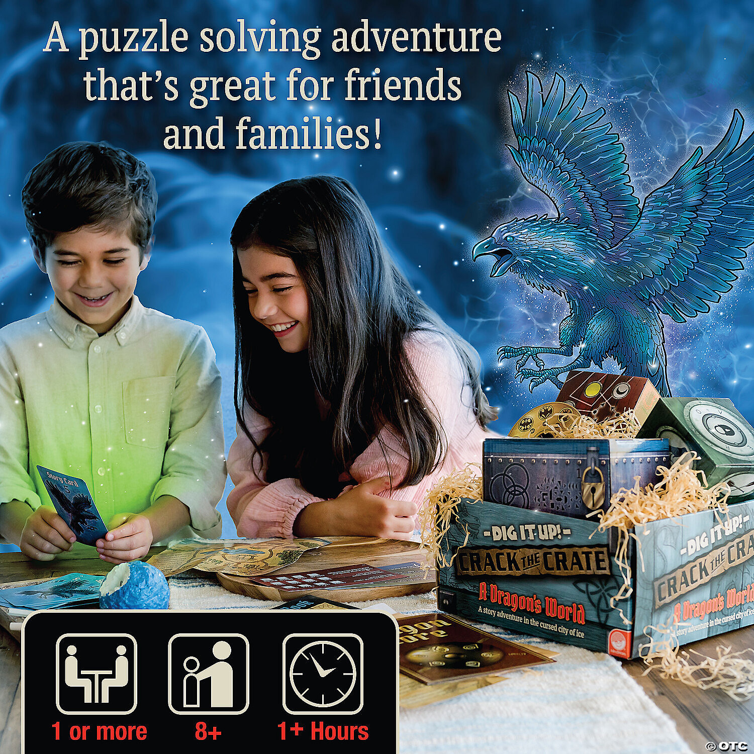 This interactive, one-time-use game lets you merge the excitement of experiential escape rooms and Dig It Up! excavation projects into one exciting group activity! Work together with friends and family to save a precious baby dragon egg and keep darkness from spreading across the land. Do you have what it takes to overcome the series of challenges, unlock the secrets of the dragons and break the curse?