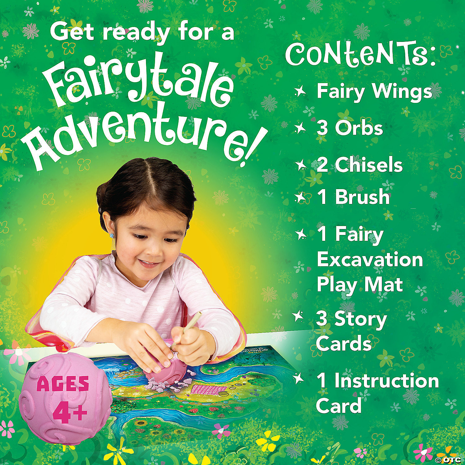 • Includes fairy wings, 3 fairy orbs, 2 chisels, 1 brush, 1 excavation mat, 3 story cards, and instruction card