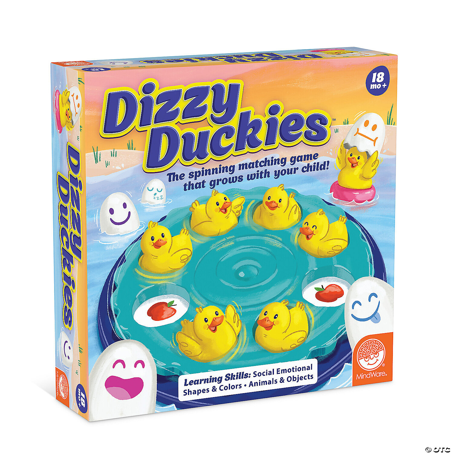 Splash into learning with Dizzy Duckies, the game that's making waves in memory-matching fun! Designed for toddlers through kindergarten age, this game grows with young ducklings, adding new challenges as they go. Younger players begin by matching colors, shapes, facial emotions and other icons on the eggs to cards underneath. Older kids graduate to rubber ducks that test their memory with a rotating board! With swappable cards for endless enjoyment, this game promises both quacking good times and developmental milestones. Dizzy Duckies is a great way to make learning take flight in young hearts and minds!