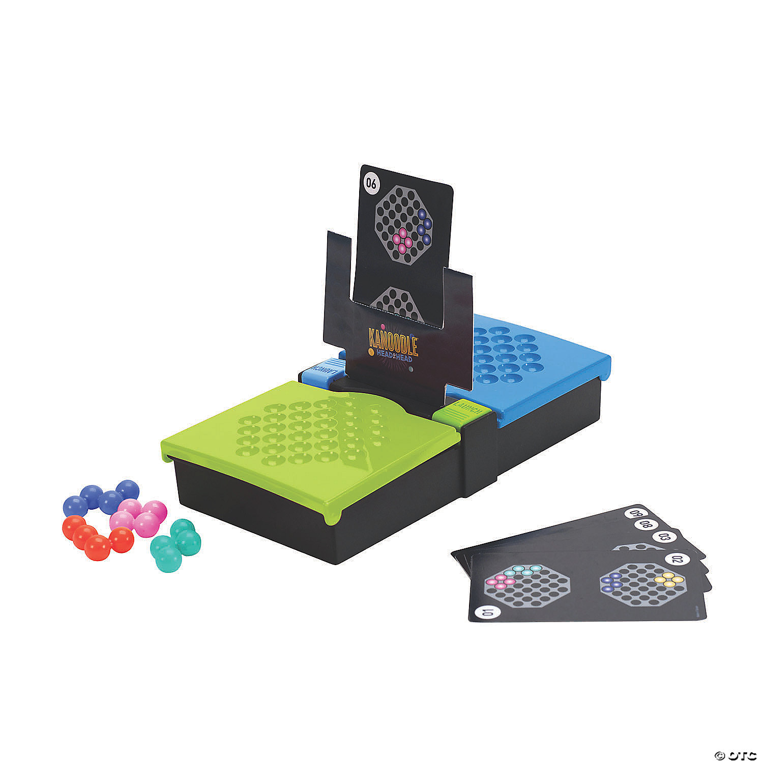 Who can Kanoodle® quicker? Put your pals to the test with this two-person Kanoodle battle! Simply slide a challenge card under the board, place the pieces shown on the card, and then race to fit the remaining pieces into your board–before your buddy does!How To Play:•1. Slide the challenge card into the puzzle tray.•2. Players race to place the pieces shown, then fit the remaining pieces onto their boards.•3. The first player to complete the puzzle pops out his opponent's pieces.•4. The first player to win 5 rounds wins the game.The nitty-gritty:•Noodle-twisting, 2-person puzzle race!•Includes 2-player puzzle board with lid, 12 puzzle pieces (6 for each player), and 40 double-sided challenge cards•80 Puzzle challenges enhance critical thinking and spatial reasoning skills Special Shipping Information: This item ships separately from other items in your order. This item cannot ship to a P.O. Box. ITEM IS NOT ELIGIBLE FOR EXPEDITED SHIPPING
