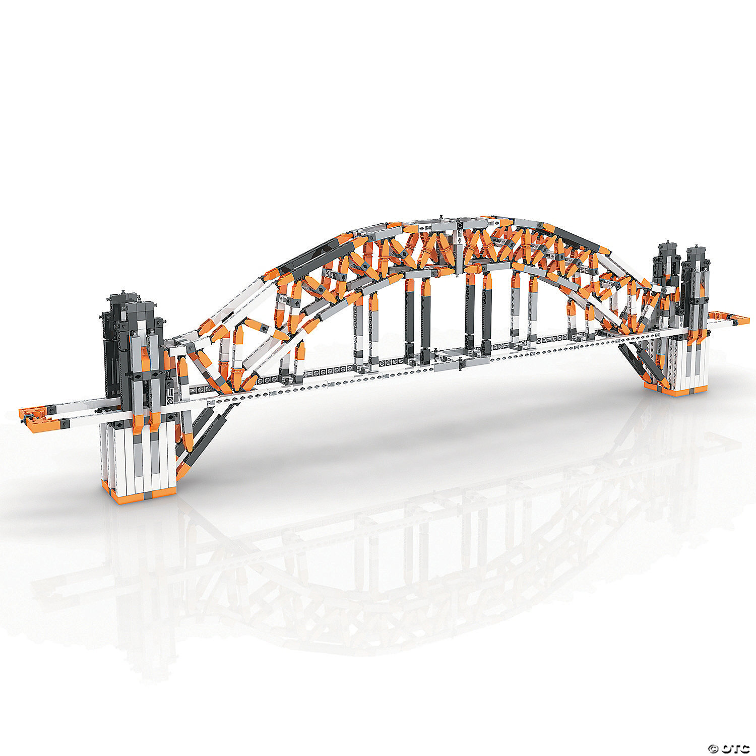 This deluxe set builds working models of a house, a pyramid and various types of bridges (beam, arch, truss, cable-stayed and suspension) along with huge models of the world famous Eiffel Tower in France (59" tall) and the Sydney Harbor Bridge in Australia (56" in length)! Builders will be immersed in discovering how triangulation provides strength on a building, the main types of forces acting on structures, how trusses work, and the major types of cable bridges. The set includes 1,051 pieces, easy-to-follow building instructions for all models either online or in the booklet included, information about the history and importance of famous structures and detailed explanations of the different scientific principles applied.
