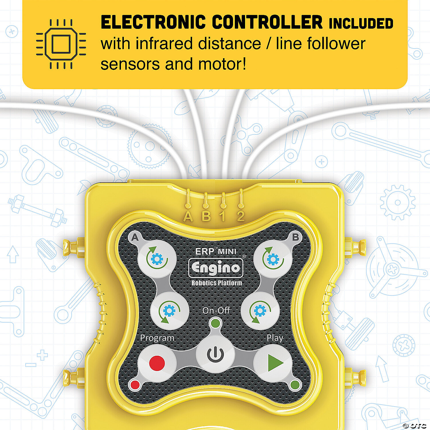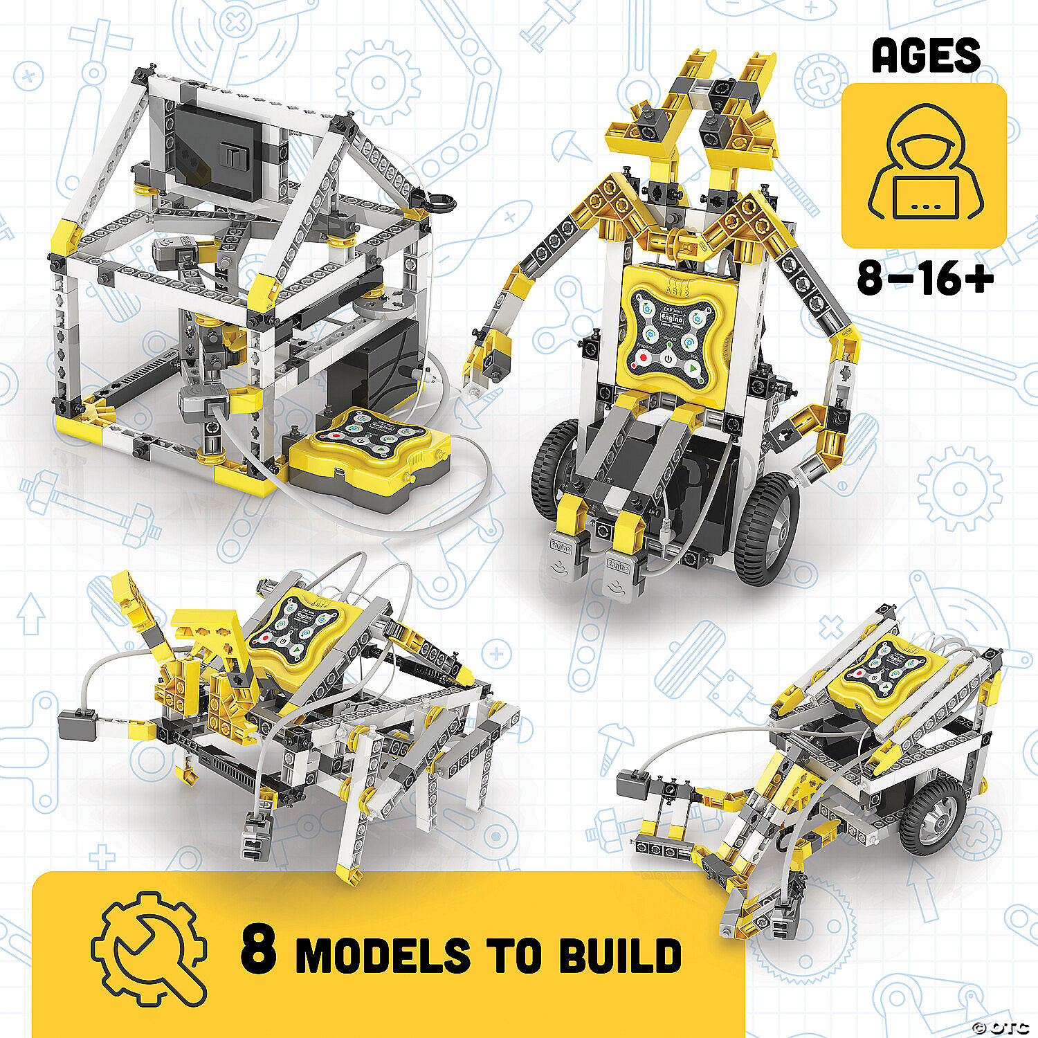 Build 8 fully programmable robots with the Engino® Robotics Mini ERP set, designed to teach robotics to school children and robotic hobbyists! Vibrant, click-together pieces and easy-to-follow building instructions make model assembly a snap. Experiment with manual, simulation, flow diagram and text editor programming to make your models move. Includes 180 building pieces, one mini controller, two InfraRed sensors and two motors to build things like a fan, hexapod, robot, a robotic house and more. • Specially designed for younger students and teaches them the principles of STEM learning.• Build, experiment and learn the history of robotics and theory• Develops all STEM Skills• Includes 180 building pieces, one mini controller, two InfraRed sensors, two motors and extraction tool