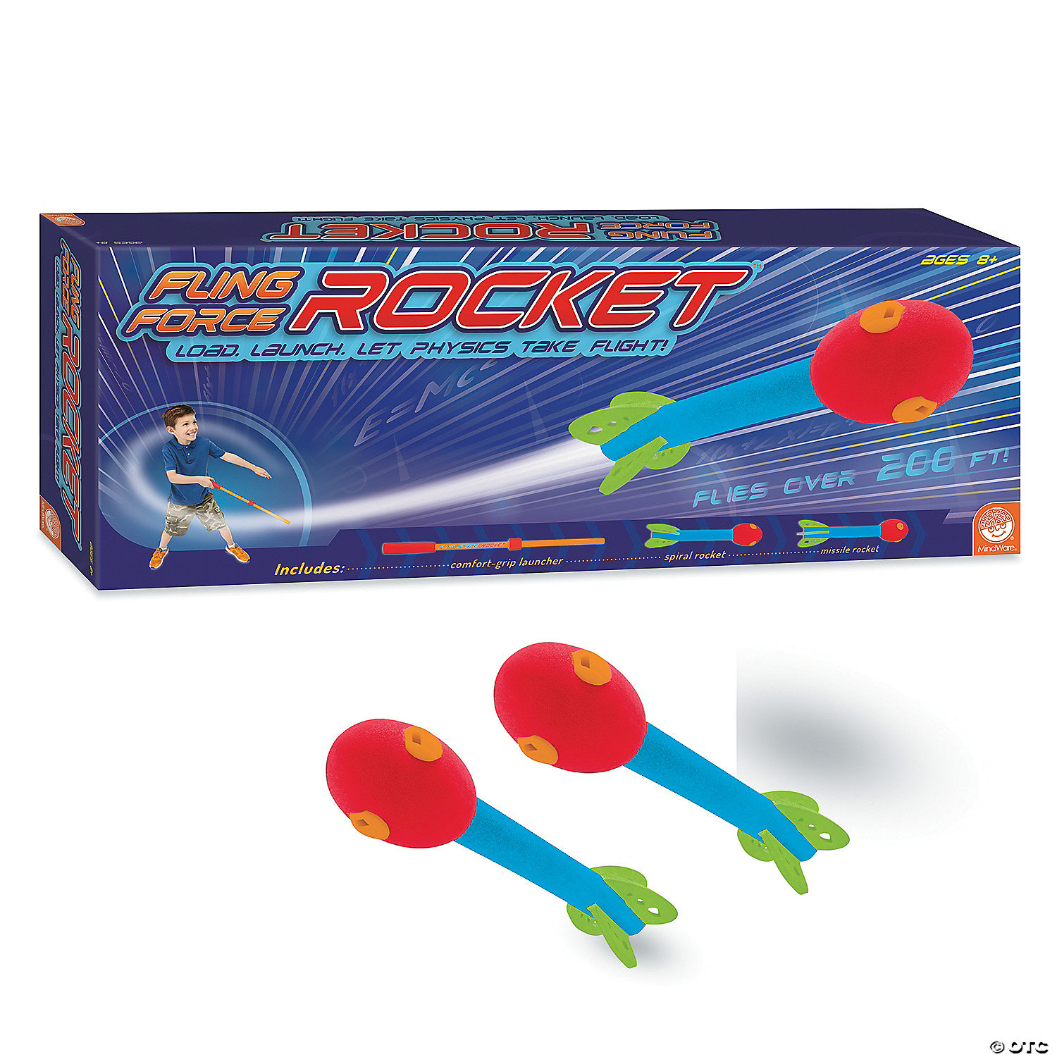 The Fling Force Rocket is a great way for kids to launch their love for physics and see the true power of kinetic energy in action. The fun blasts off as you place one of the two unique soft-foam rockets on the comfort-grip launcher and use your own energy to send them whistling in the air over incredible distances. This set of two offered by MindWare comes with a total of four toy rockets, each with their own exceptional aerodynamic attributes. The 4-fin spiral rockets use wind resistance to send them twisting through the air for improved accuracy, while the 3-fin missiles cut down wind resistance to launch them even farther. The Fling Force Rocket is a super fun way to get to learn about the true power of physics, as well as simply getting them outside to play.• Comes with two rocket types - each with unique attributes• Great for playing catch with friends• Excellent way to get outside and play• Teaches: active play, an understanding of aerodynamics, an understanding of kinetic energy, general physics• Comes with: comfort grip launcher, two missile rockets, two spiral rockets