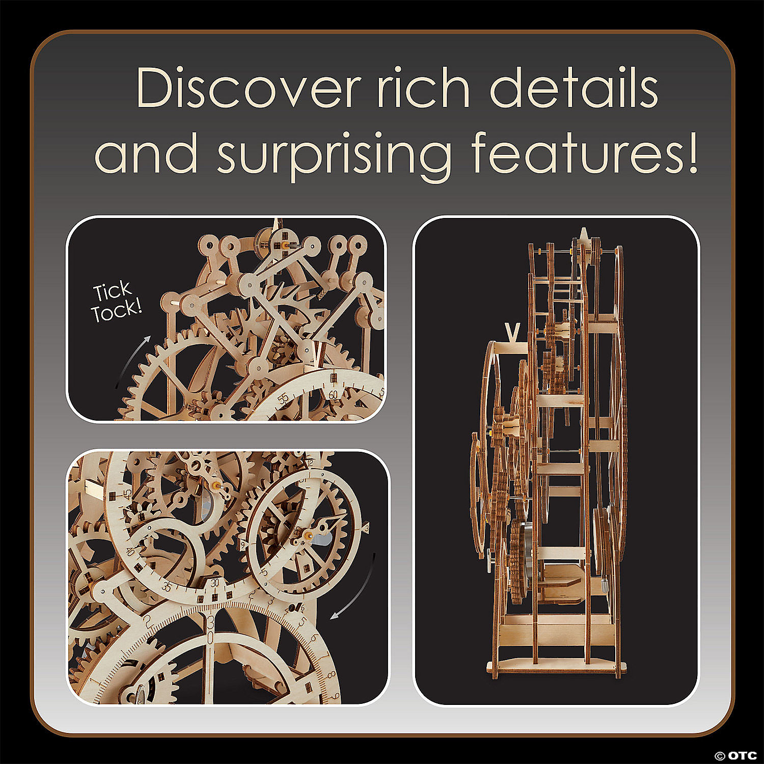 Challenge yourself and build an intricate, working clock from beautiful, laser-cut wood pieces. This 3D vintage clock is exciting to build, and the final product brings the principles of mechanics to life. Just set the system of gears, rods and wheels in motion, and enjoy artistic mechanics that keep time. What will happen when the clock strikes midnight? Average building enthusiasts can complete the puzzle in about 4 hours.• Build a 13” tall wooden clock with no glue and no tools!• Awe-inspiring finished form well beyond the norm for construction toys• Combines all the benefits of traditional building sets with principles found in leading STEM toys• Develops fine motor skills, creativity, perseverance and dexterity• Includes 166 pre-cut pieces and detailed, easy-to-follow instructions