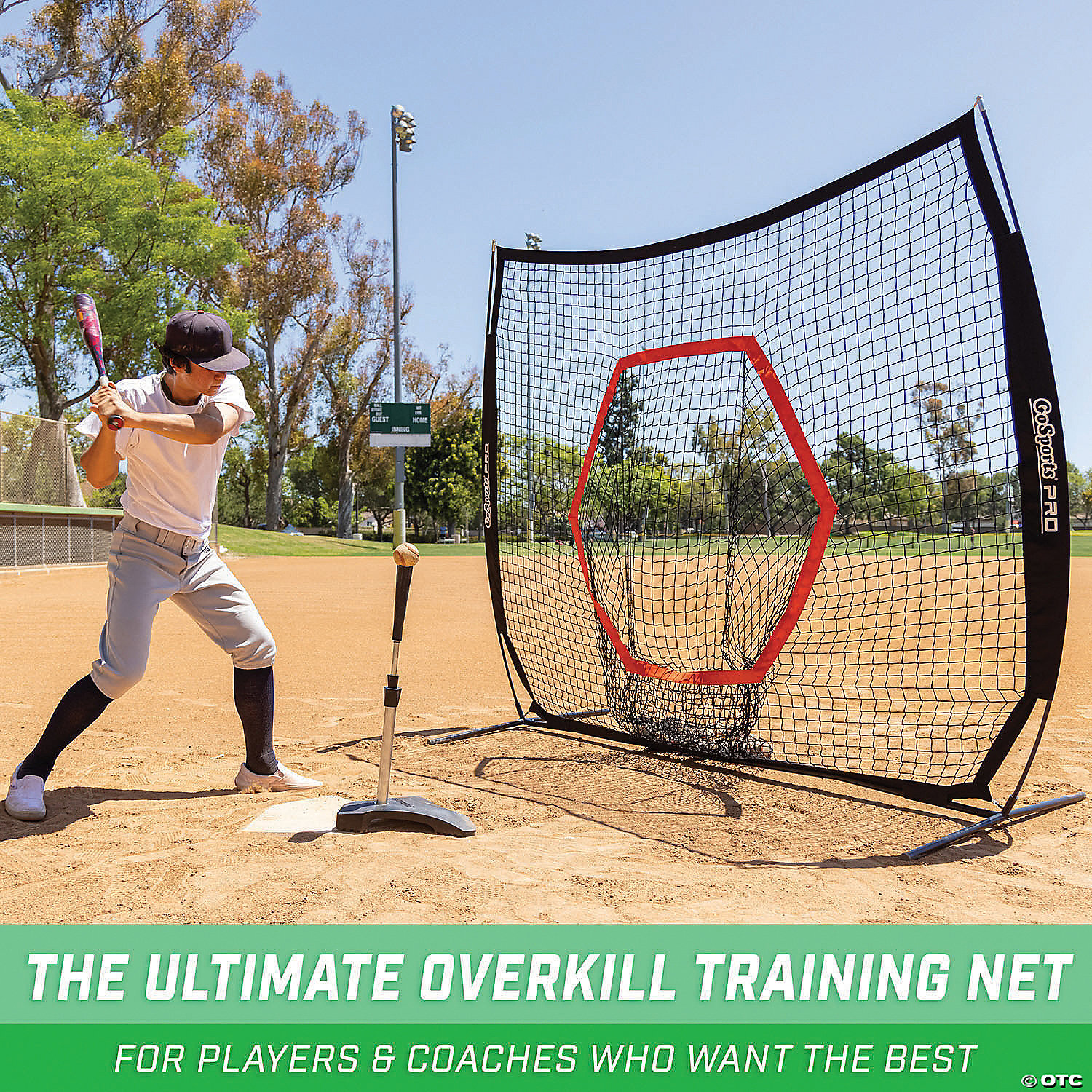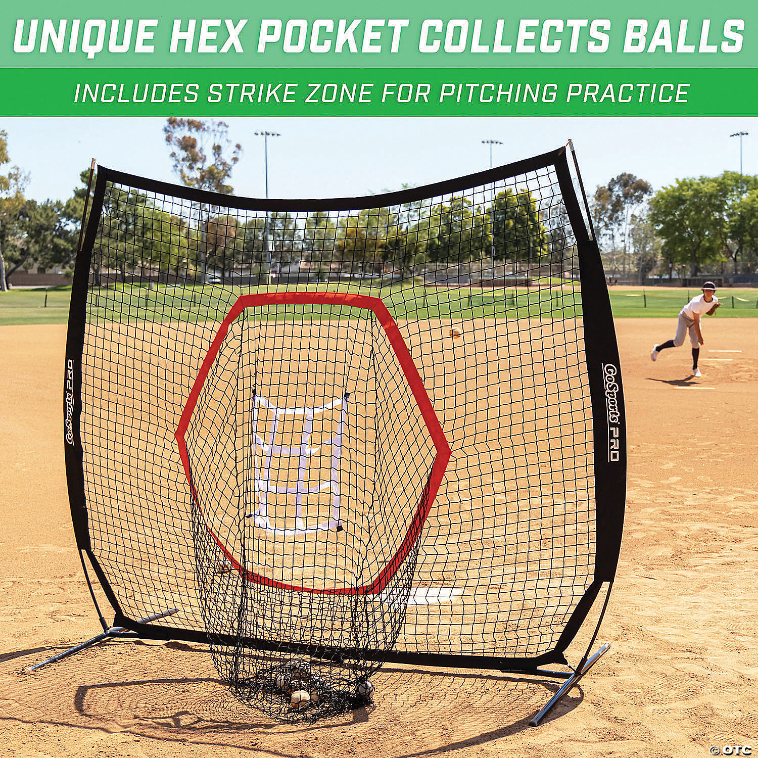 The GoSports 7'x7' PRO net builds upon our #1 selling GoSports 7'x7' baseball net and takes it to the next level with 2x stronger netting to make for the ulimate training net. The net is designed to help players train in several key areas: hitting: hit off a tee or have a coach lob balls to hit into the center part of the net. Players can focus on swing mechanics and technique without having to Shag balls. Pitching: each net includes an adjustable strike zone that attaches to the net so pitchers can dial in their various pitches without needing a catcher. Fielding: setup the net behind a base and practice fielding balls and throwing accurately into the center of the net. The distinctive hex shape pocket is designed to look good and stand out from the crowd while also collecting balls during practice. The net sets up in 90 seconds so it can easily be taken to fields for training, but it can also be used in your backyard. The net is made using a powder coated steel frame with a robust 8-ply net (2x stronger than standard) to withstand years of use. This is a must have for any coach looking to take their players to the next level. Special Shipping Information: This item ships separately from other items in your order. This item cannot ship to a P.O. Box. This item may be subject to additional processing days. ITEM IS NOT ELIGIBLE FOR EXPEDITED SHIPPING You may initiate a return for unused items within 30 days, if the items are in original packaging with all original materials included with the shipment.