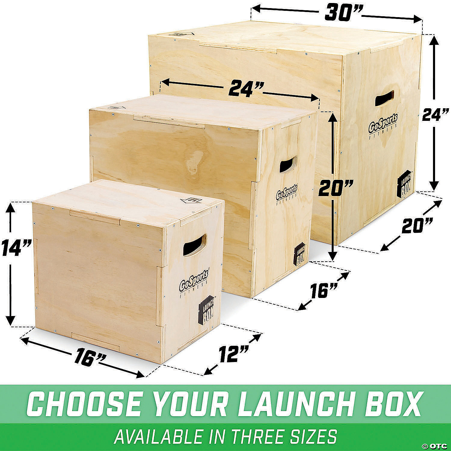 The GoSports Launch Box is a 3-in-1 fitness aid designed for all skill levels to raise health to new heights! The Launch Box is designed with three variable heights: 20”, 24” and 30”. Simply rotate the box to your desired height following the printed markings and you’re ready for a wide range of workouts: tricep dips, push-ups, decline push-ups, box jumps and more! Also great for crossfit workout classes and any fitness routine. Whether you have a busy schedule or you’re looking to add variation to your workouts the Launch Box delivers on countless exercises designed to fit all types of conditioning routines. The GoSports Launch Box is built rugged for workouts, featuring a premium wooden puzzle box construction for maximum support and an additional internal brace for optimized durability and safety. Beware of low cost plyo box brands that skimp out on an inner brace! The Launch Box also features sanded rounded edges for improved comfort during use and built-in carry handles for easy portability. Step up to fitness made easy with the GoSports Launch Box! Special Shipping Information: This item ships separately from other items in your order. This item cannot ship to a P.O. Box. This item may be subject to additional processing days. ITEM IS NOT ELIGIBLE FOR EXPEDITED SHIPPING You may initiate a return for unused items within 30 days, if the items are in original packaging with all original materials included with the shipment.