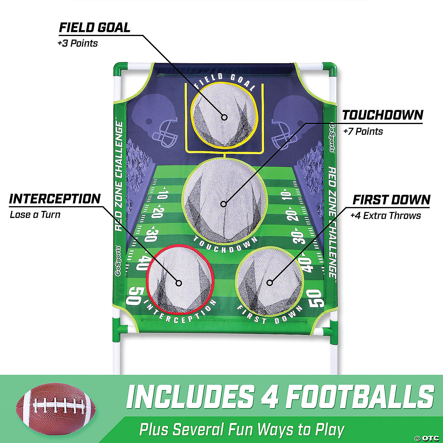 Step up to the GoSports Red Zone Challenge and put your football skills to the test! This exciting new game offers football fans of all ages a chance to become the MVP at the next tailgate, backyard party, game day viewing and more! Red Zone Challenge features quick and simplified assembly so you can quickly start throwing into the Field Goal, Touchdown and 1st Down to get ahead of the competition, just avoid an Interception! The game includes fun rules, plus the ability to make up your own. The Red Zone Challenge target is made of robust PVC and features a unique tearproof target to withstand all the fun in addition to 4 premium rubber inflatable footballs and a dry erase scoreboard to keep track of the action. The weighted base and included stakes also allow you to unleash your inner quarterback so you can throw like the pros without the set falling over, unlike low-cost alternatives. Once the score has been settled your Red Zone Challenge easily disassembles for portability and storage into the included travel carry case. Go head to head in your very own gridiron faceoff with the GoSports Red Zone Challenge! Special Shipping Information: This item ships separately from other items in your order. This item cannot ship to a P.O. Box. This item may be subject to additional processing days. ITEM IS NOT ELIGIBLE FOR EXPEDITED SHIPPING