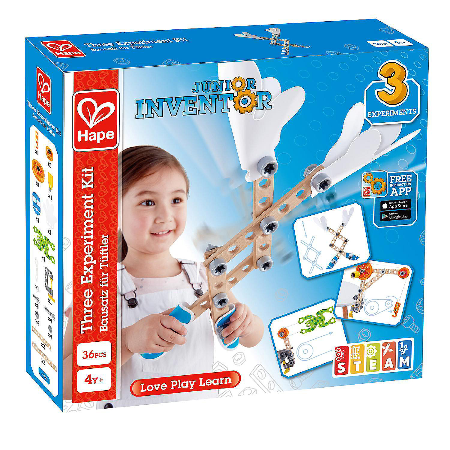Introduce young scientists to the excitement of discovery with the Hape Junior Inventor: Three Experiment Kit! This beginner-friendly STEM set includes everything kids need to conduct three hands-on experiments that explore basic principles of physics and engineering. Using high-quality wooden and plastic components, children can build a balancing scale, a spinning top launcher, and a climbing frog—all while learning about force, motion, and simple machines.Perfect for first-time inventors, this compact kit encourages critical thinking, creativity, and early problem-solving. With illustrated instructions and open-ended potential, it’s a great stepping stone into the world of STEM and an ideal way to build confidence through experimentation.