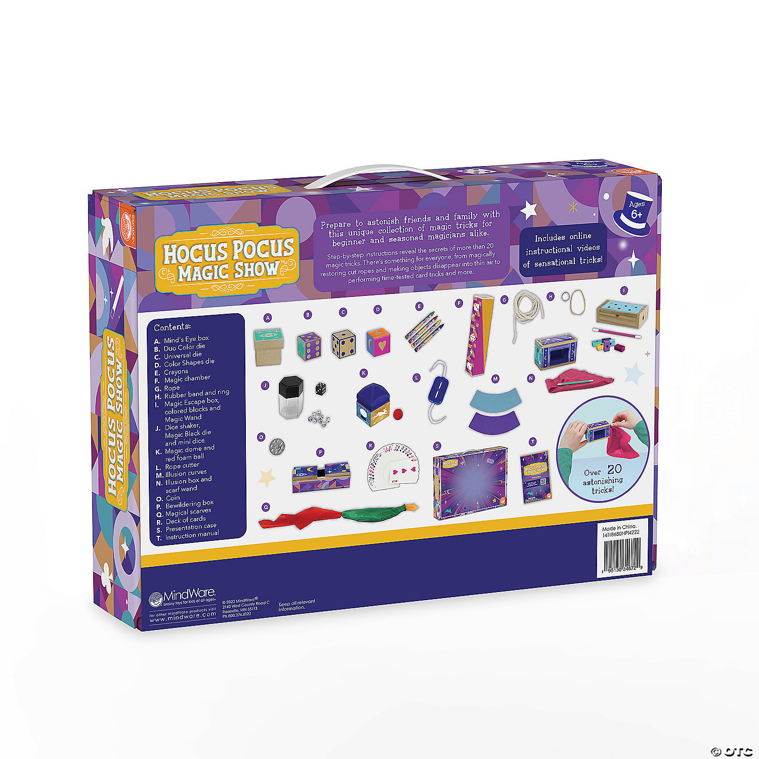 Unleash your child's inner magician with the Hocus Pocus Wooden Magic Show Kit, a premium magic kit for kids designed to inspire wonder and creativity. Packed with over 25 high-quality wooden props, this comprehensive kids magic kit enables young performers to master more than 20 captivating magic tricks, from classic illusions to mind-bending sleights of hand.