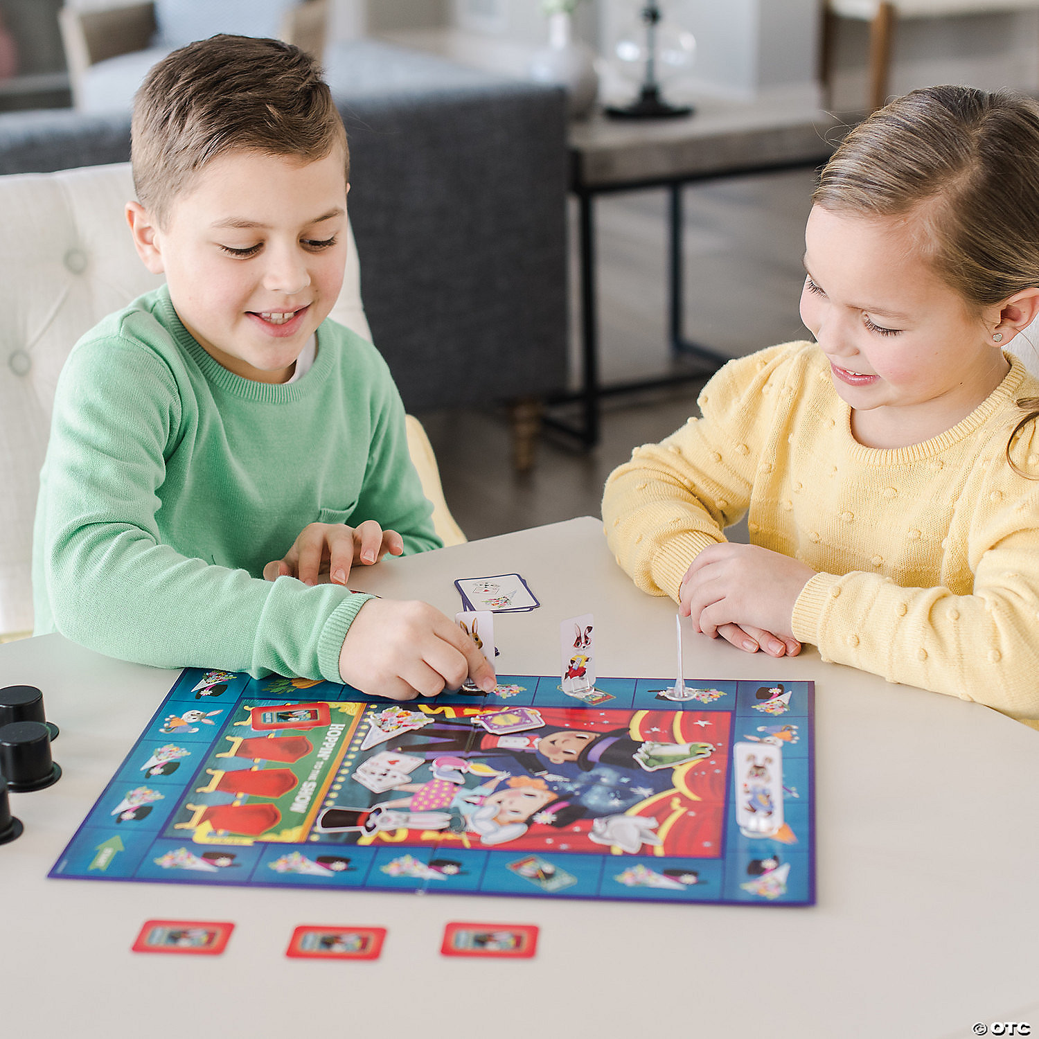 Help the bunnies hop to their seats in this cooperative game! Strategize with other players to decide how you’ll work together to find the bunnies’ lost tickets before Al Kazaam the Magician finishes setting up the magic show. Wave your (included) magic wand and even perform a magic trick of your own along the way! The bunnies are eager to watch the magic happen…can you help them reach their seats before the show starts? • Develops decision making, turn-taking and simple strategy skills• Ideal for home or classroom use • Includes 1 game board, 13 assistant cards, 1 spinner, 9 magic prop tokens, 4 bunnies with stands, 4 tickets, 1 magic wand, 3 magic hats and instructions.
