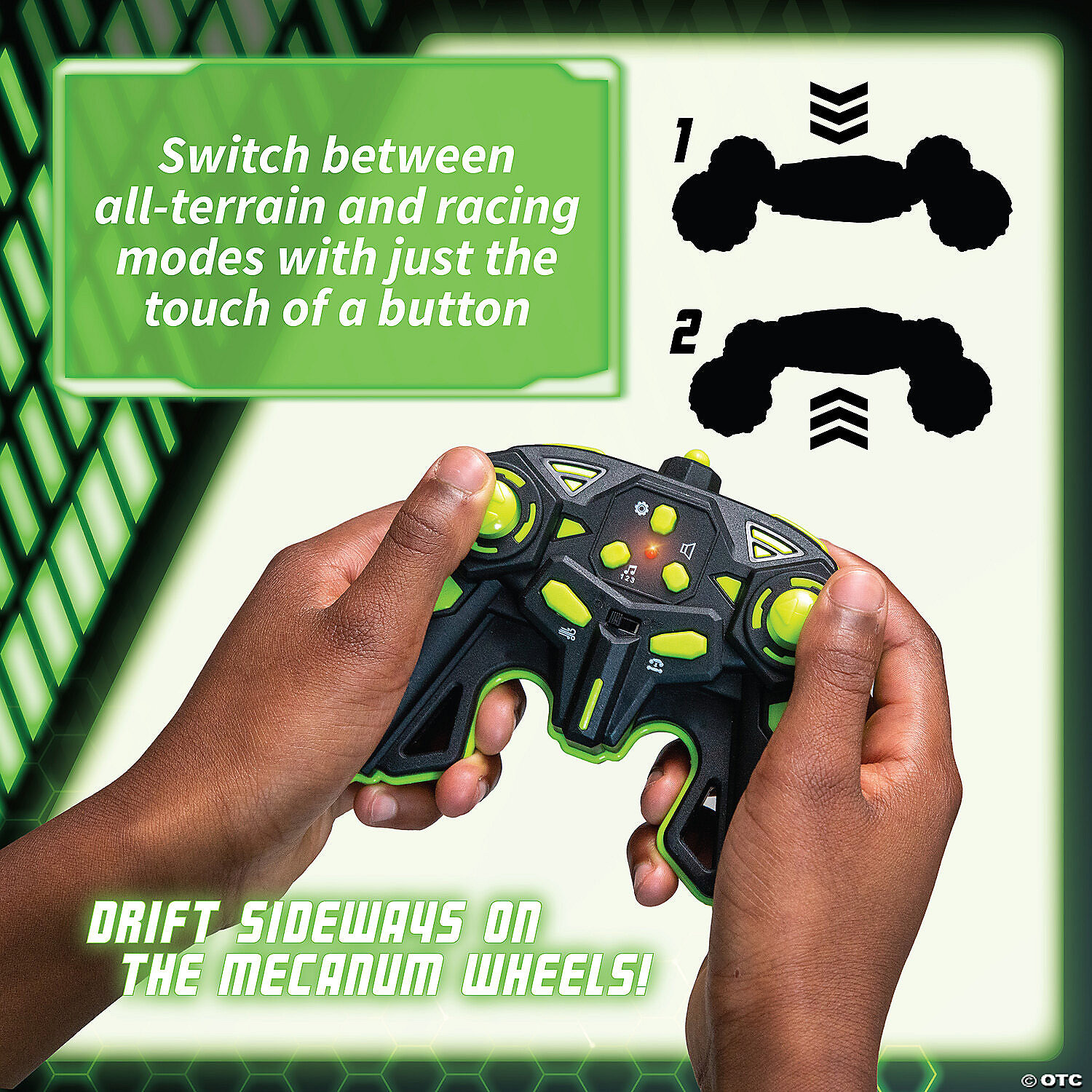 • The Hyper Stunt Drifter Remote Control Car easily transitions from a rugged all-terrain vehicle to a high-speed racing machine, complete with captivating fog effect, high-quality speakers and multicolored wheels
