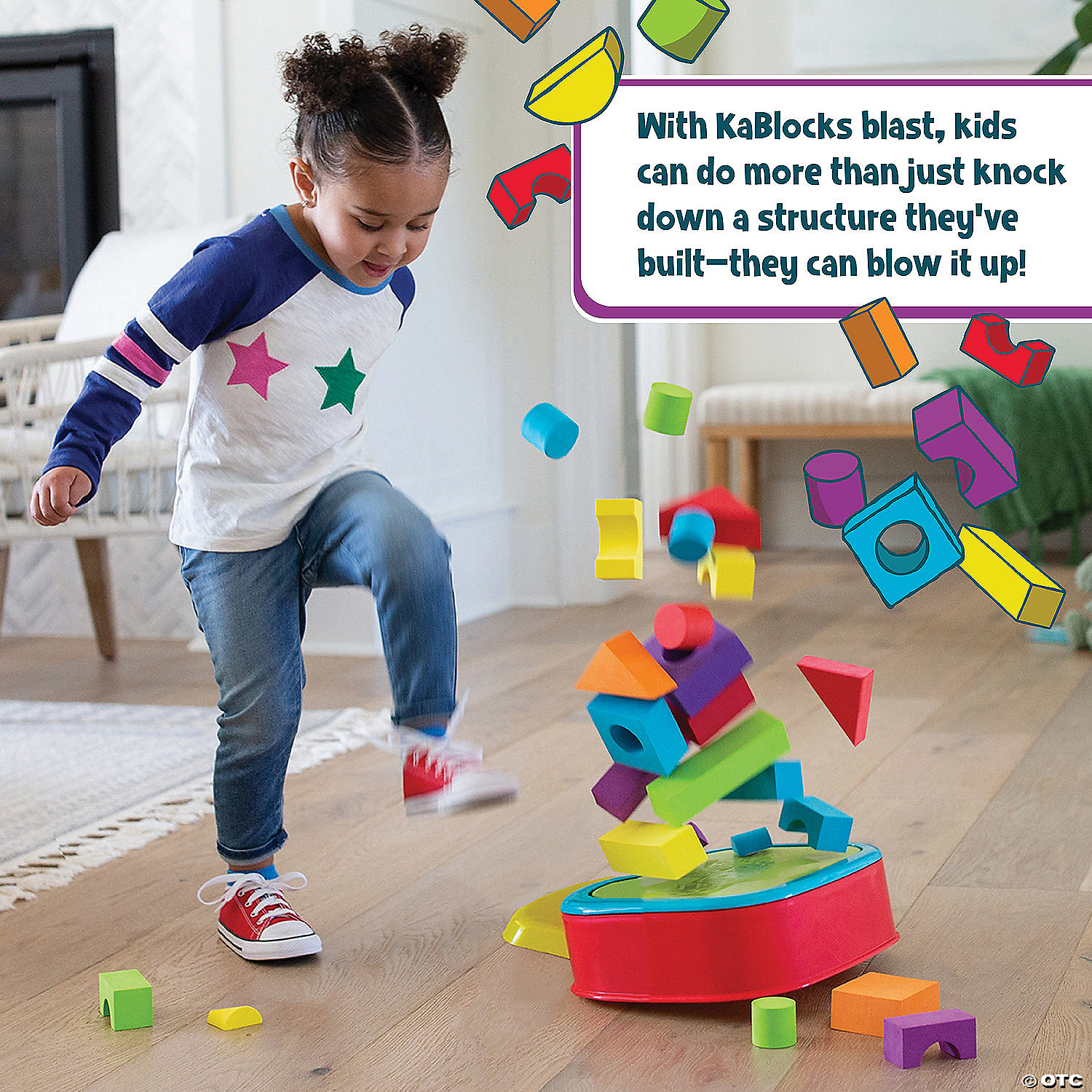 • Build & Blast Action: KaBlocks Blast takes building to new heights—literally! The kinetic force launcher sends soft foam blocks soaring over 6 feet in the air, creating thrilling explosions every time your child stomps on the easy-to-use launch pad.
