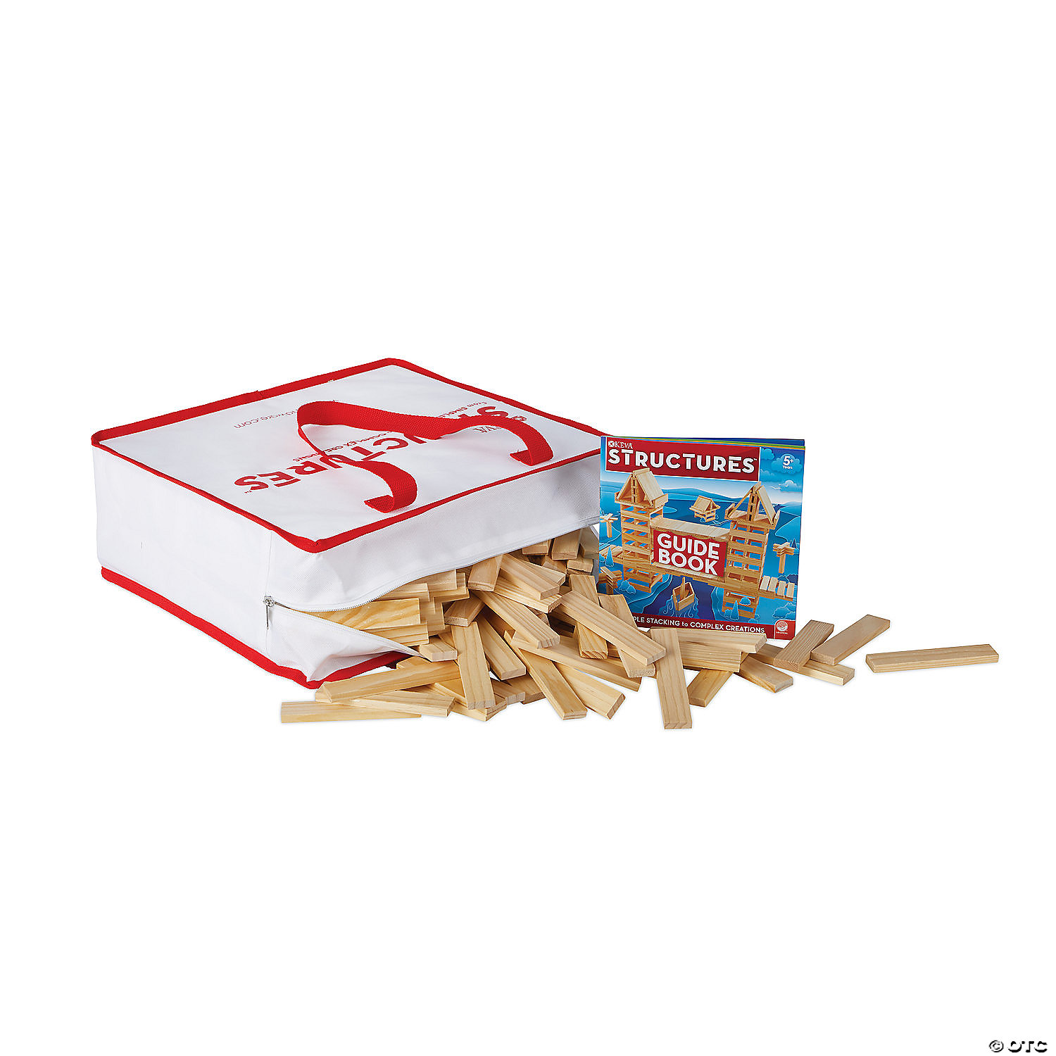 KEVA Structures 400-piece plank set comes with 400 wooden planks, a canvas zippered storage bag and an 18-page idea book with project photos and quick-start instructions.