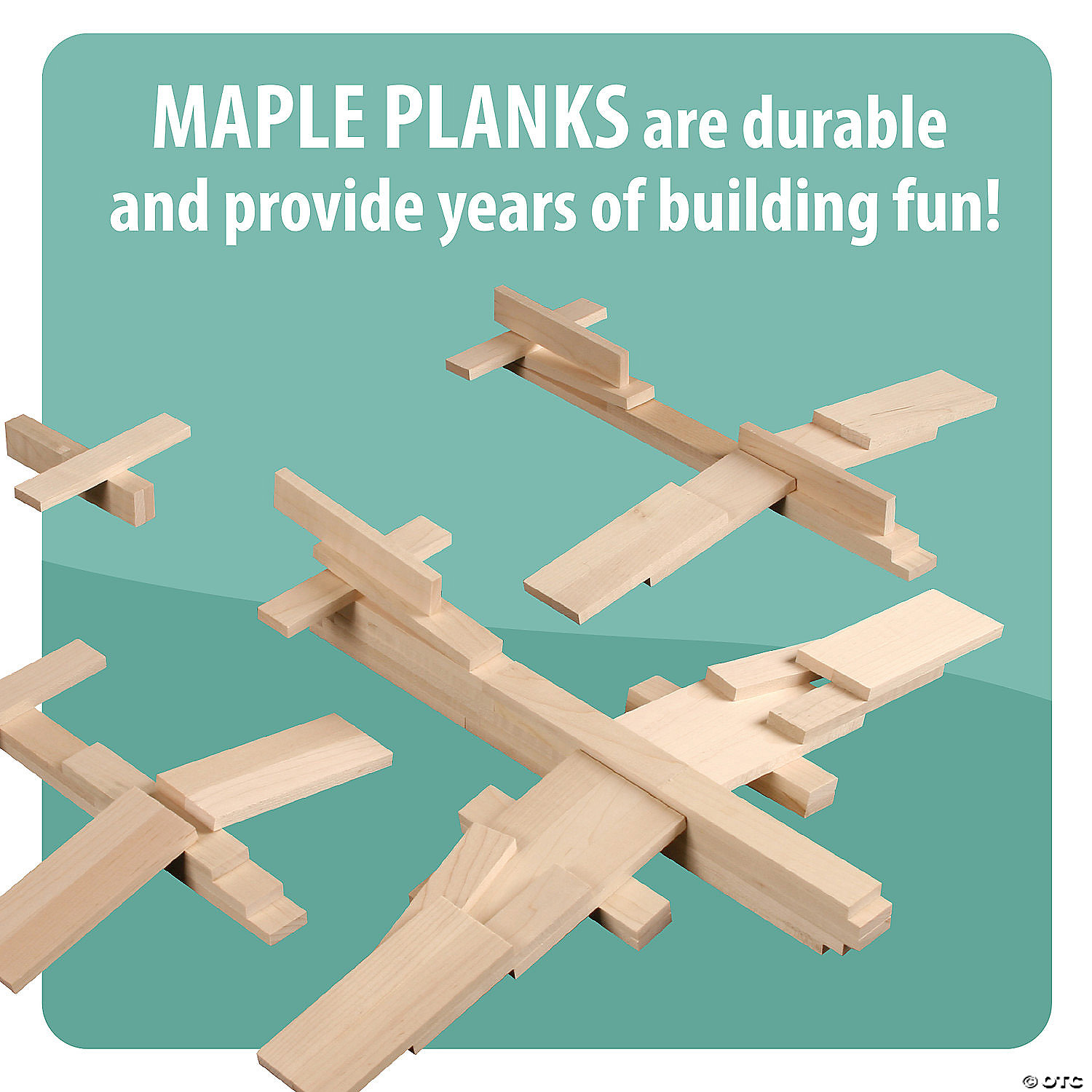 No glue or connectors required...simply stack wood planks to create buildings, monuments and geometric forms. Its the ideal activity to help kids gain an understanding of balance and proportion, as well as an interest in architecture, building and design. A full-color idea booklet with build-out instructions and two lightweight KEVA balls are included. The Benefits of Maple: Premium maple planks are tough, durable and stack perfectly time after time.  Beautiful maple wood grain creates works of art.
