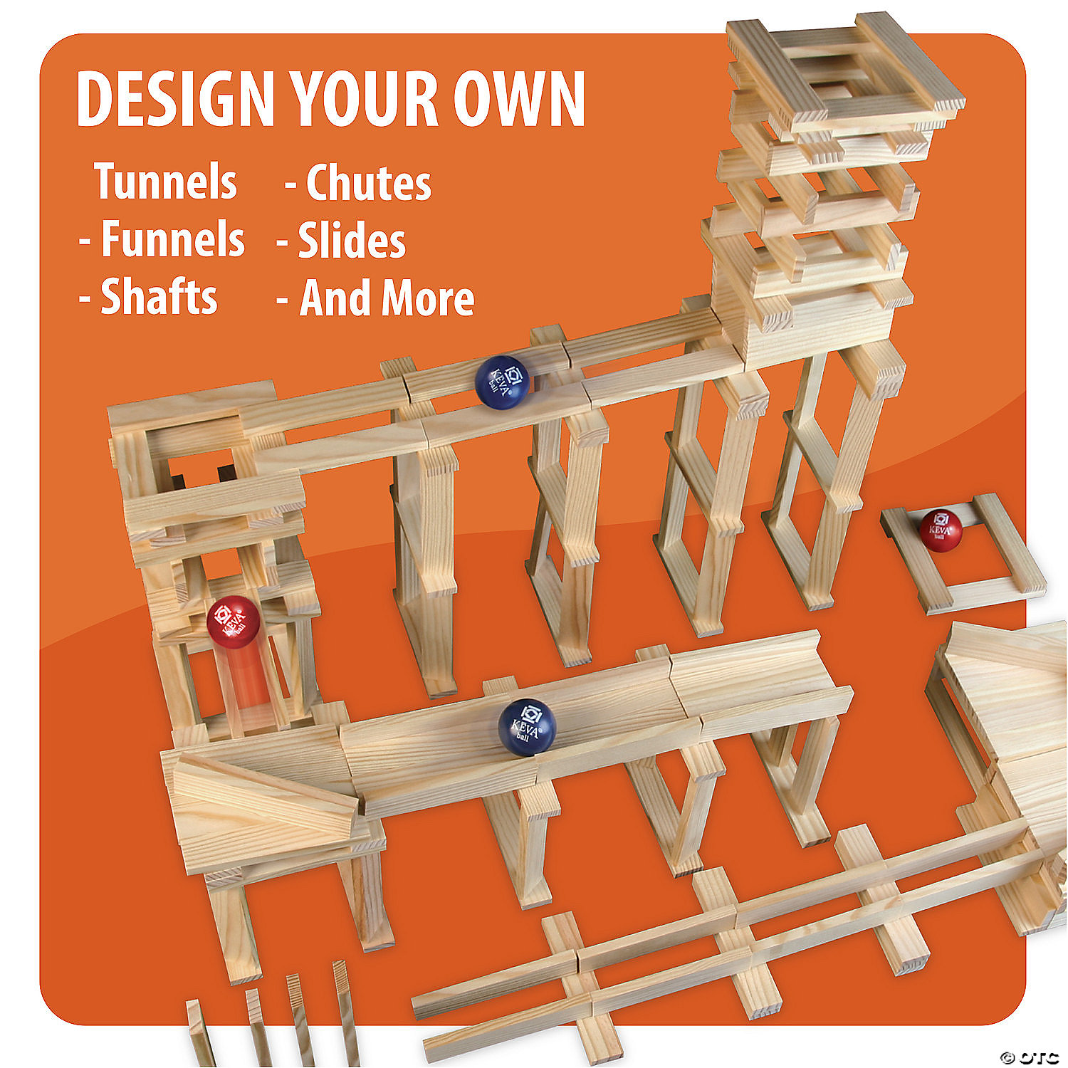 Perfect for creating a KEVA building station in your classroom, our set of 800 KEVA Maple Planks are divided into two durable pop-open canvas tote bags. This convenient storage option allows you to stack and carry the filled bags with ease.This set also includes an idea booklet, four 10"X10" laminated idea cards, and 16 KEVA balls.