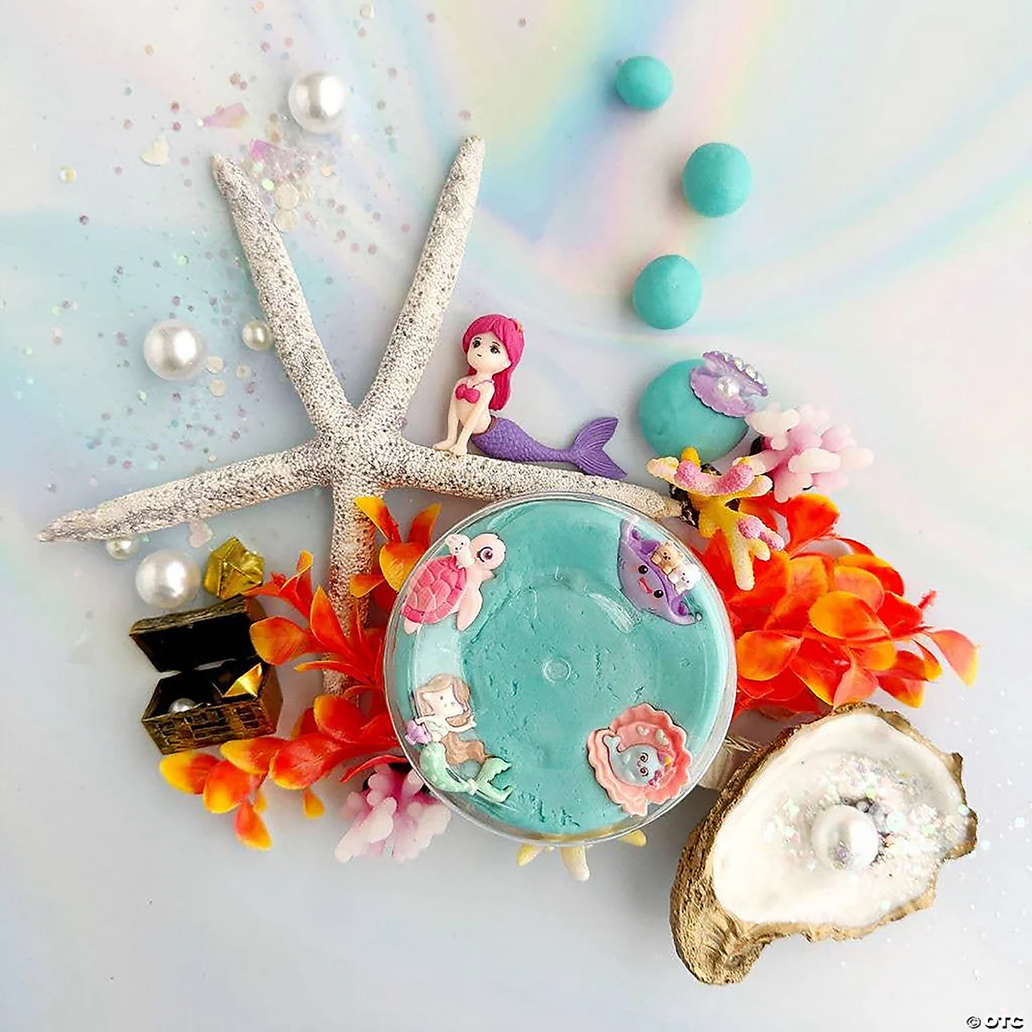 • Includes 8 oz Light Blue (Blue Hawaiian) KidDough, mermaid figurine, sea turtle, sting ray, and narwhal charms, aquatic plants, clamshell charm, giant pearls, and treasure chest filled with treasure