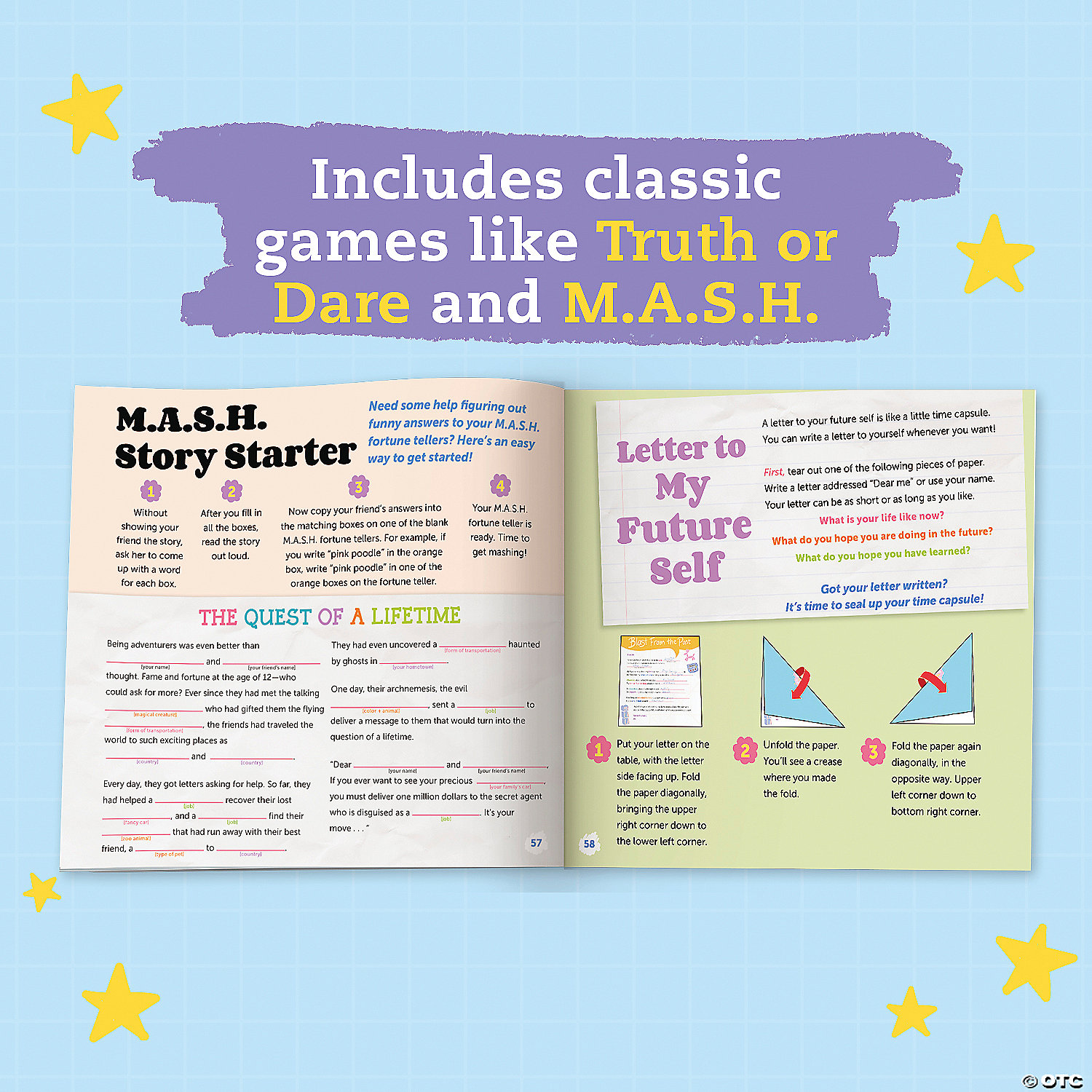 • 70 page book with 24 perforated pages to fold into interactive fortune tellers with creative prompts and games