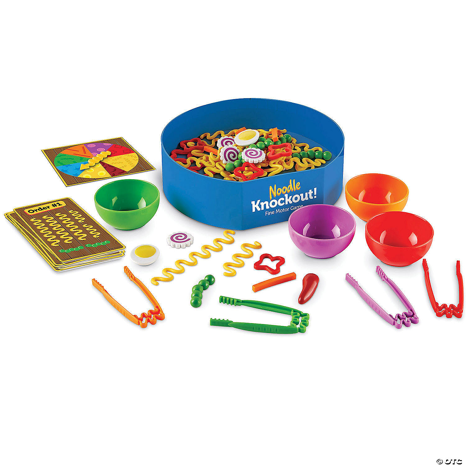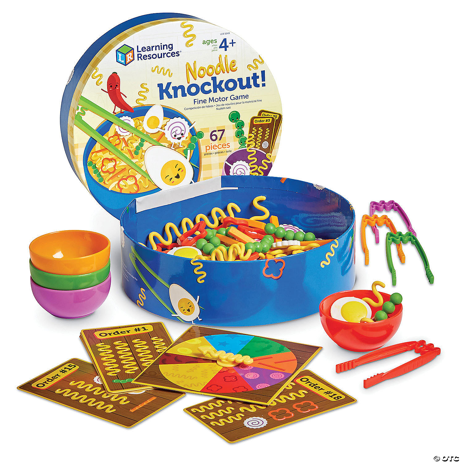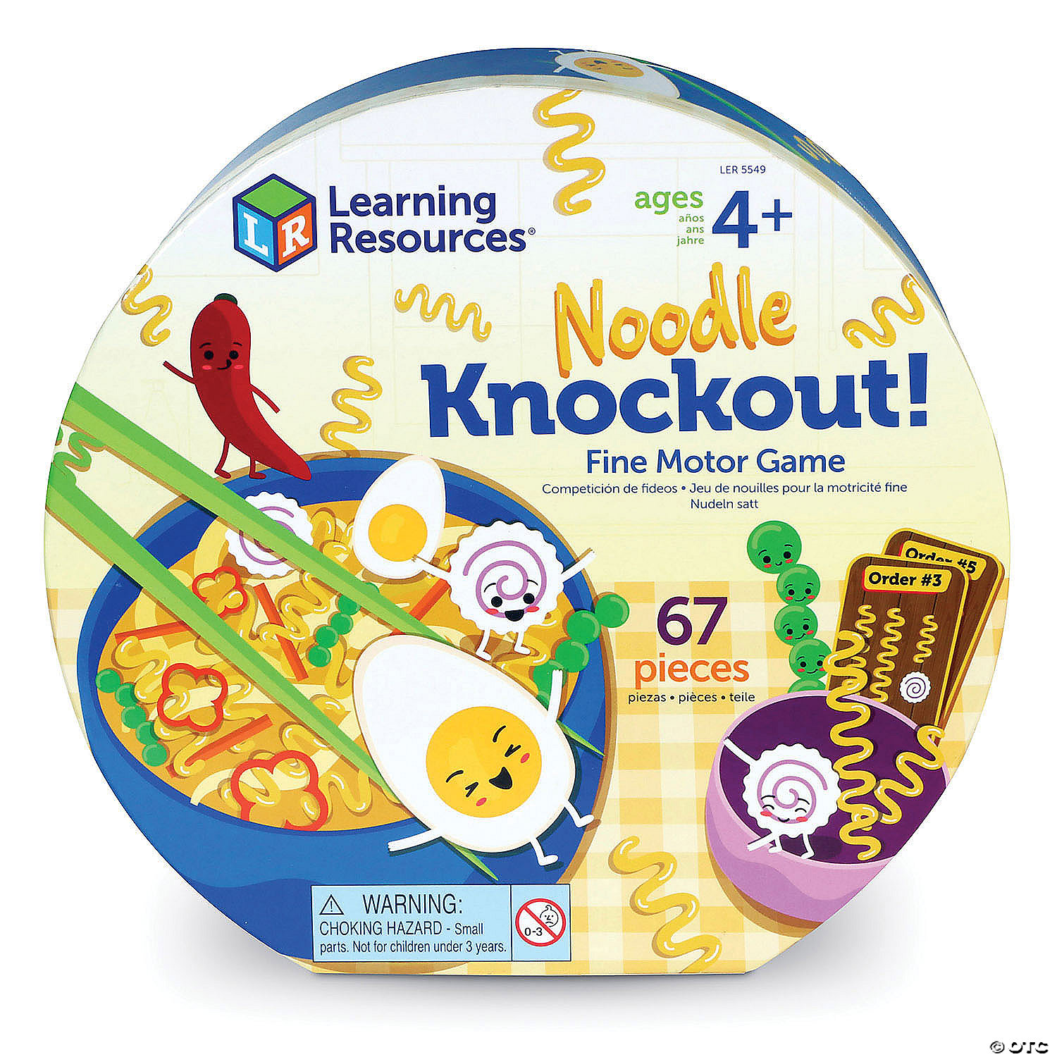 This fine motor game is a ramen rumble! Kids build new preschool fine motor skills as they snag oodles of noodles and toppings to make bowls of ramen in the Noodle Knockout! Fine Motor Game from Learning Resources. Draw one of the 10 double-sided order cards, pick up a pair of fine motor chopsticks, and grab the noodles and ingredients needed to take a delicious victory! In addition to fine motor skills, these fun skill games also help kids build early preschool counting and color recognition skills. Designed for 1-4 players, there are even multiple ways to play—test your fine motor skills with a solo bowl, or compete with up to three friends! This versatile preschool skill development tool also comes packaged in a sturdy, reusable plastic bowl that acts as both the game board and storage! The Noodle Knockout! Fine Motor Game includes 20 noodles in 2 lengths, 27 ramen toppings, 4 sets of fine motor chopsticks and bowls, and more. Special Shipping Information: This item ships separately from other items in your order. This item cannot ship to a P.O. Box. Item is not eligible for expedited shipping. You may initiate a return for unused items within 30 days, if the items are in original packaging with all original materials included with the shipment.