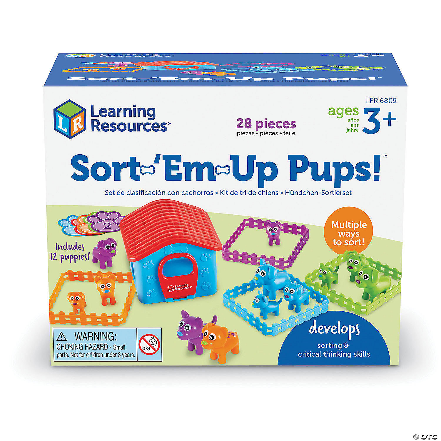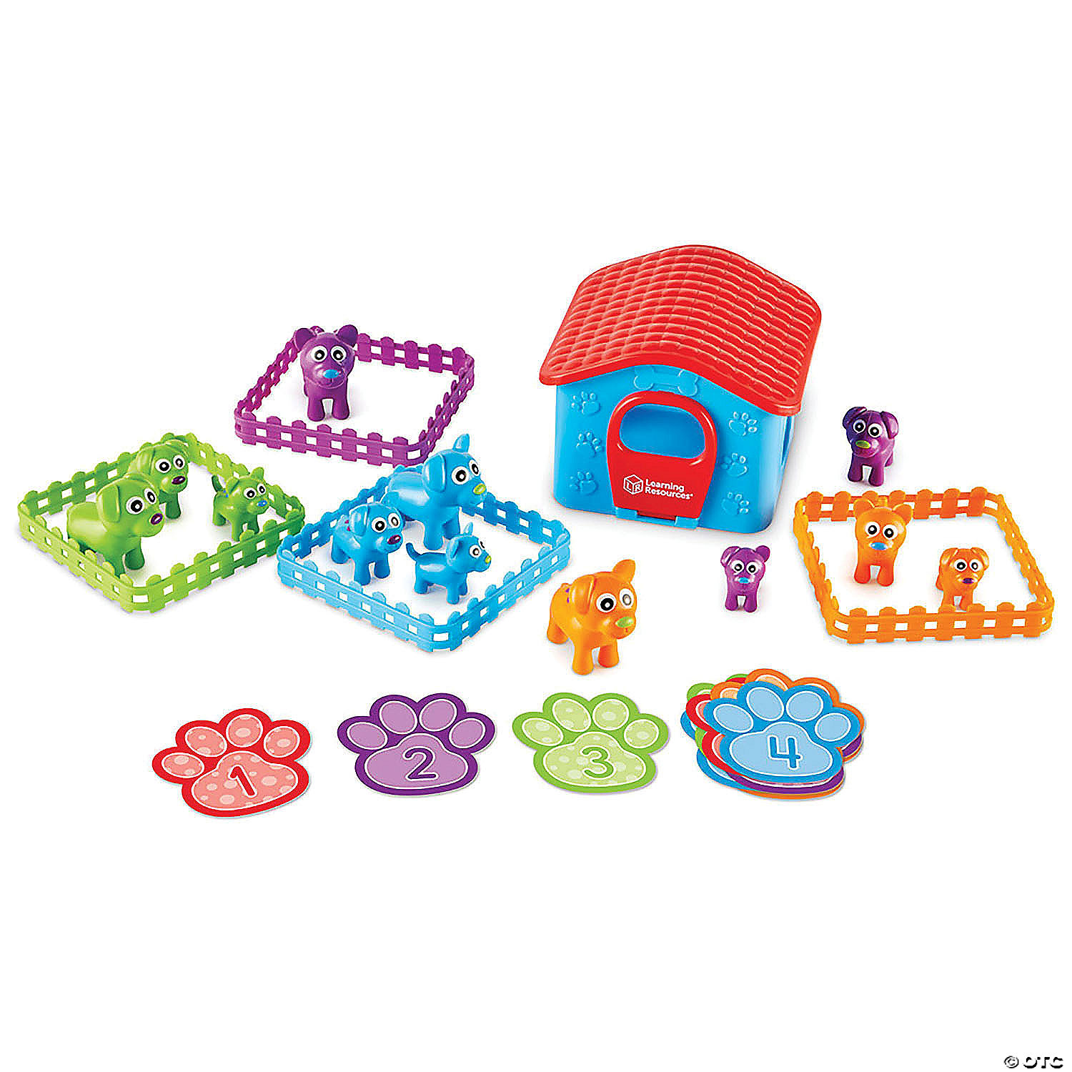 It's a pooch sorting party, and you're invited! Kids build early preschool sorting and critical thinking skills as they sort and match the colorful dogs found in the Sort-'Em-Up Pups! set from Learning Resources. Look closely at these friendly little dogs, and you'll see that no two pups are alike—each of the set's 36 toy dogs has a different combination of sizes, colors, spots, and more, so kids can sort them by 6 different attributes! Sort them together into the included fences by ear shape, nose color, and more! In addition to building preschool sorting skills, the Sort-'Em-Up Pups! set also comes with a dog house that's ready for imaginative fun with other play figures around the house. Best of all: when playtime is over, all of the set's pieces store inside the dog house for easy clean-up! Special Shipping Information: This item ships separately from other items in your order. This item cannot ship to a P.O. Box. Item is not eligible for expedited shipping. You may initiate a return for unused items within 30 days, if the items are in original packaging with all original materials included with the shipment.