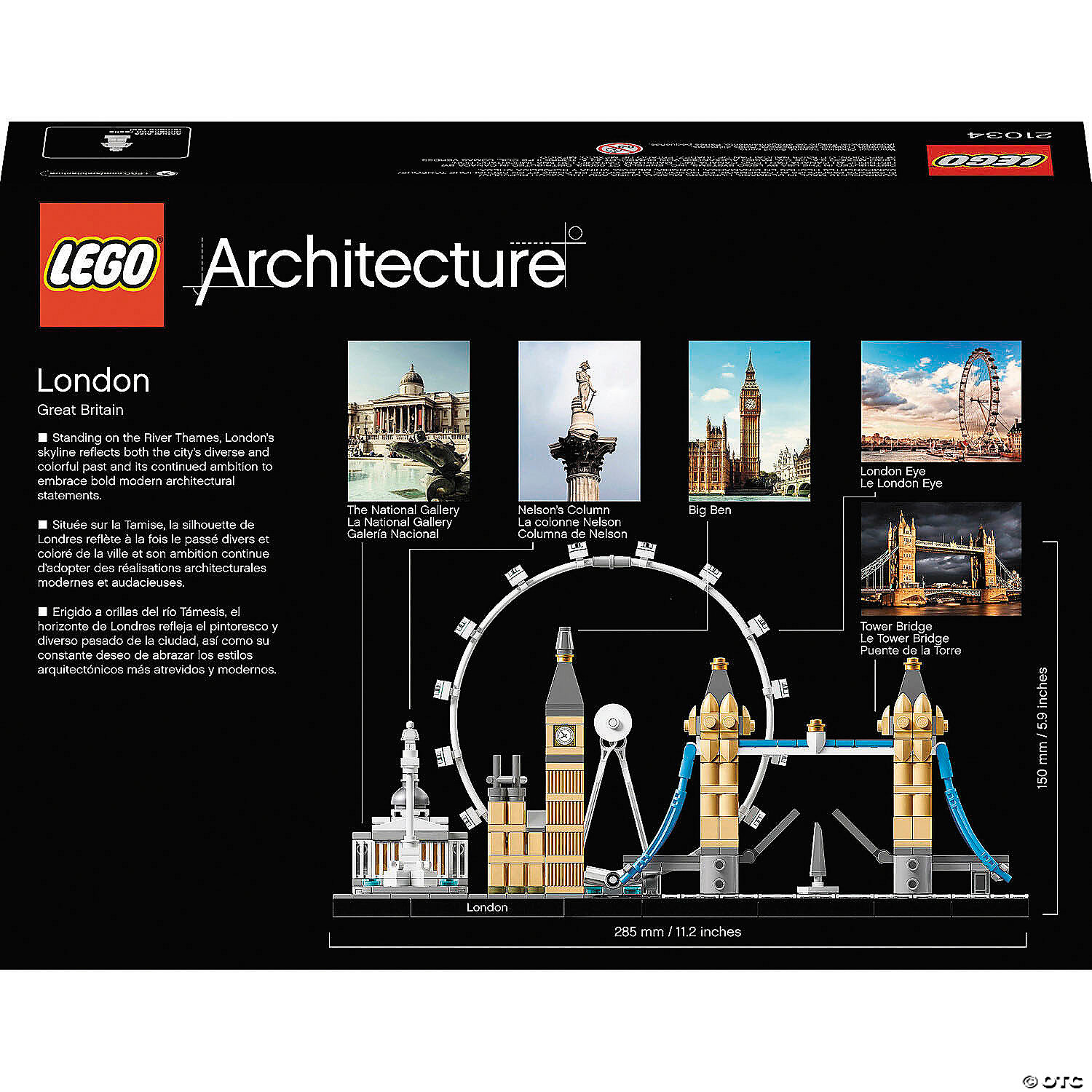 Capture the architectural essence of London with this magnificent set that brings together the iconic National Gallery, Nelson’s Column, London Eye, Big Ben (the Elizabeth Tower) and Tower Bridge, in an inspirational skyline setting. Each individual LEGO® structure provides a unique and rewarding building experience, with true-to-life color and relative scale depiction. London’s Thames River is represented in the tiled baseplate, adding an extra dimension and feel of authenticity to this wonderful model that focuses on the amazing architectural diversity of one of the world’s most dynamic cities.