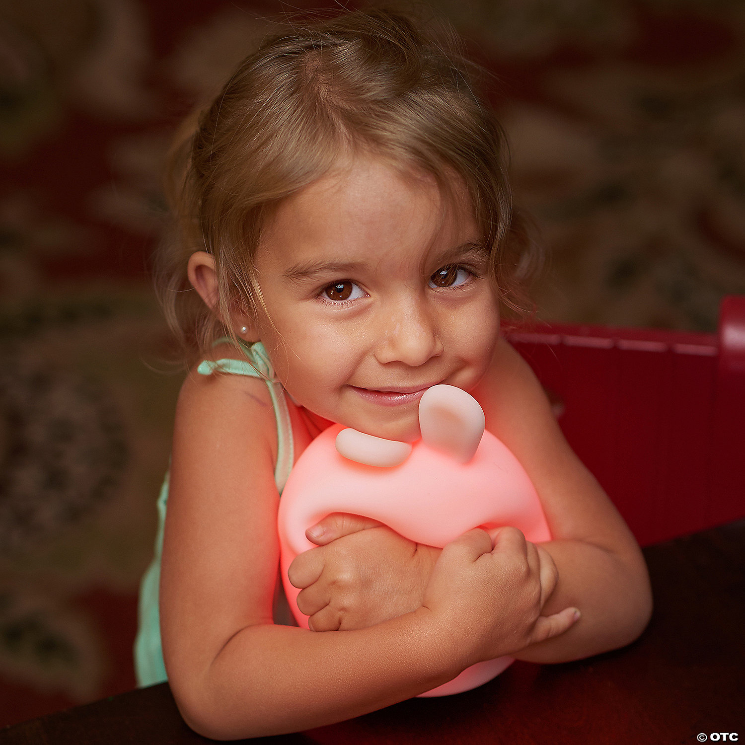 Snuggle up with this childhood companion that offers innovation, fun and hours of play! A single charge from a USB cable provides 72 hours of mesmerizing changing lights, and the optional remote lets you adjust brightness and set a sleep timer for peaceful nights. Kids can tap to change between 9 colors to help them not only enjoy the beautiful hues but learn about colors in an interactive way. Made from high-quality silicone that remains cool to the touch and can be easily wiped down, this technologically advanced wonder provides a soothing and safe bedtime buddy to cuddle. Plus, it’s conveniently portable, so your child's new best friend can accompany them wherever they go! • LumiPets® animal nightlights are soft, cuddly and cool to the touch, making them ideal bedtime sleep buddies• Teaches colors, promotes creativity and encourages emotional expression and regulation• Includes animal nightlight figure and remote control