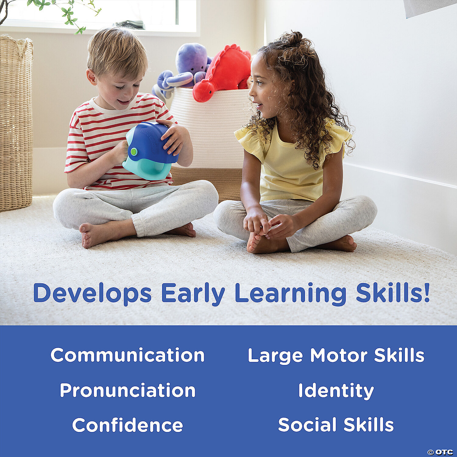 Giggle, sing and speak into this one-of-a-kind voice recorder toy, which captures up to 20 seconds of sound and plays it back! When the lid is moved to reveal the orange speaker under the face symbol, recording immediately starts picking up nearby noises, from secret messages or silly jokes to harmonious notes and more. A pull of the lid the other way replays their acoustic treasures through the purple speaker. It's perfect for fostering self-discovery and enhancing language skills while providing screen-free fun at home, in the classroom or on the go! Designed for little ones aged 3 and up, this innovative mimicking toy encourages creative communication and joyful interaction. Grab this must-have talk back toy today and watch your child explore the power of their own voice in the most amusing way! Requires 3 AAA batteries, sold separately.