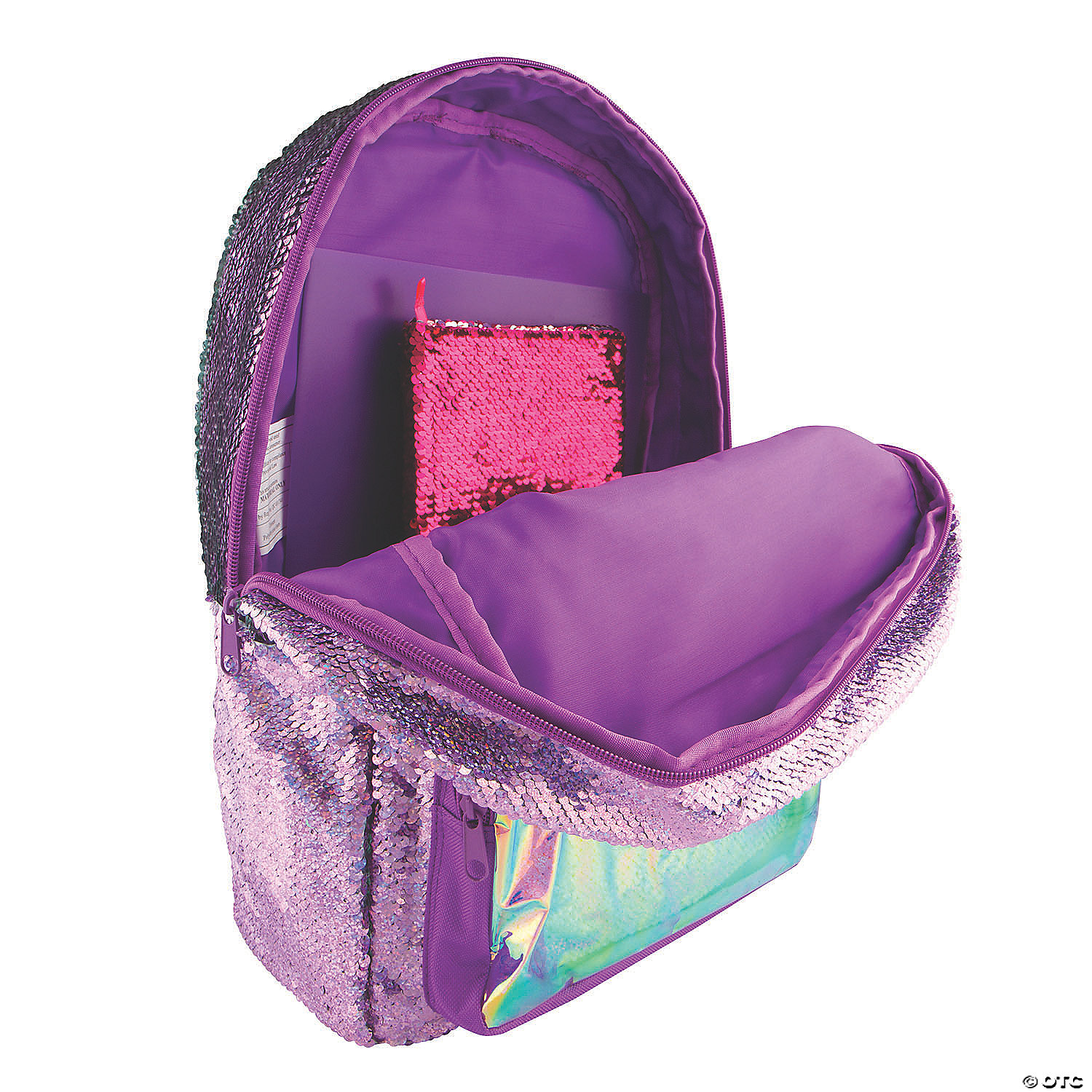 Show your Unicorn team spirit with this adorable Magic Sequin Backpack! A magic reveal accessory pocket changes images from a Unicorn cupcake to "Team Unicorn" with a swipe of your hand. Backpack changes from glittery blue to shimmery purple. Back side is sturdy poly/nylon with nylon straps. Bring a little sweet into your school day. BONUS: Add a little magic! Shimmering fun sequins will change colors with just a swipe of your hand. This showstopper will be a fabulous back to school look! Pouches can fit your phone, pencils, lip gloss and more!