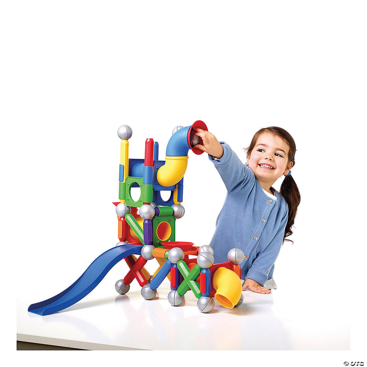 Build the ultimate ball track with this new SmartMax magnetic construction set that contains an amazing 74 pieces! With so many options you can build all kinds of structures and let the balls roll. Mega Ball Run contains special parts including tubes and X-shaped bars with 4 magnetic ends. All parts can be combined with all existing SMARTMAX sets, creating an endless range of possibilities. SmartMax enables young children to explore magnetism safely, with strong, oversized pieces that are specifically designed for handling by young kids. At the same time, older children will have fun using the pieces to construct towers, bridges and countless other creations. SmartMax magnets are strong enough to carry up to 60 times their weight! Special Shipping Information: This item ships separately from other items in your order. This item cannot ship to a P.O. Box. ITEM IS NOT ELIGIBLE FOR EXPEDITED SHIPPING