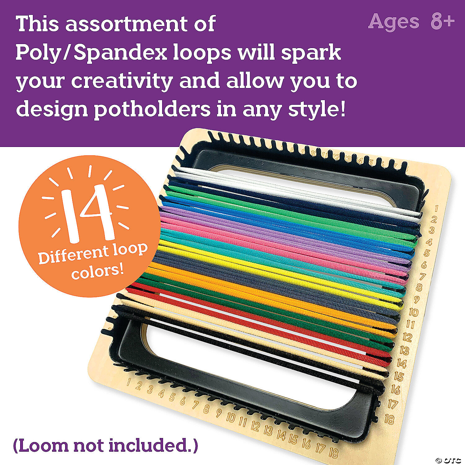 • The Make Your Own Weaving Loops Refill Kit presents a bountiful array of 288 poly/spandex loops in 14 different colors, designed to fit perfectly with 7" x 7" metal weaving looms (not included)