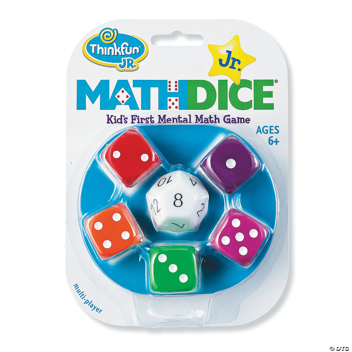 This dice game is quick to play, adaptable for all skill levels and stores neatly in its own drawstring pouch! Math Dice Jr. begins with a Target Number. Players form a math equation-using three dice-that gets as close to the Target Number as possible by using addition and subtraction to help build early basic math skills.