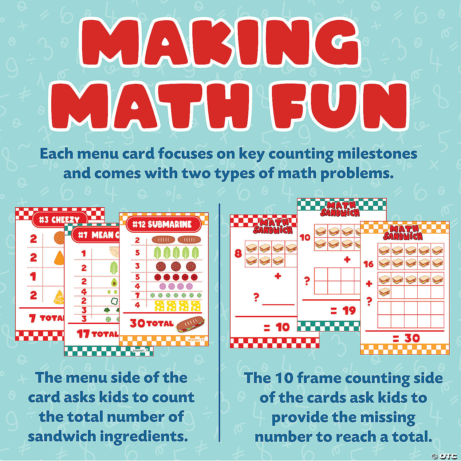 Roll the dice and challenge yourself to spell a word in Alphabet Soup! Players get three tries to roll three dice in hopes of spelling out a three-letter word. Players collect a word card for each word formed, giving children a sense of accomplishment as they watch their pile growing! Alphabet Soup is perfect for engaging young minds in preschool learning activities and kindergarten learning games. Develop essential skills such as reading, learning sight words and mastering spelling while having a blast. Spice up your preschool learning activities and add some flavor to kindergarten learning gameswith this reading game that’s both entertaining and enriching!• Preschool learning activity where early readers roll dice to spell sight words and collect cards • Develops reading skills and sight word recognition• Includes 3 letter dice, 1 dice "soup" can, 4 "soup spelling mats" and 43 word cardsOpen your own sandwich shop with Math Sandwich! This deliciously educational game lets children explore mathematical concepts while they build sandwiches from durable felt food pieces. Kids will practice counting and adding as they follow the menu cards to place colorful vegetable, meat and cheese items on each sandwich. With over 100 food pieces, they can experiment with a wide variety of sandwich combinations, counting as they go! Play alone or use the guest check tablet to take orders from customers of your pretend restaurant. Then slip your guest’s sandwich into the glassine envelope and start on the next snack to prepare! Age Recommendation: Ages 3 and up