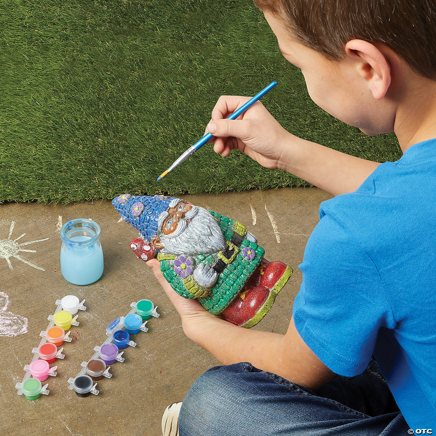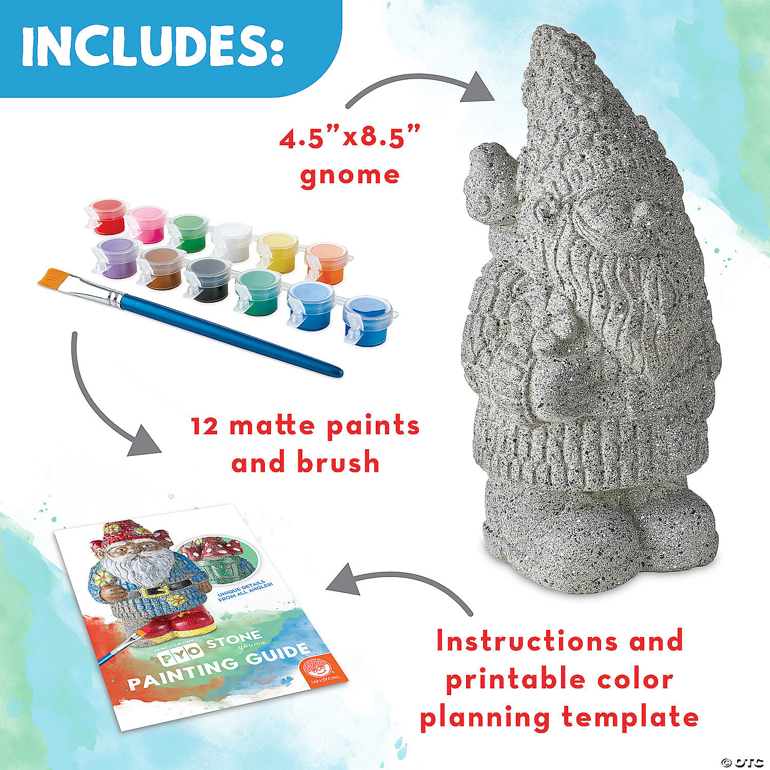 • 8 1/2” Garden Gnome, 12 matte paints, paint brush and instructions