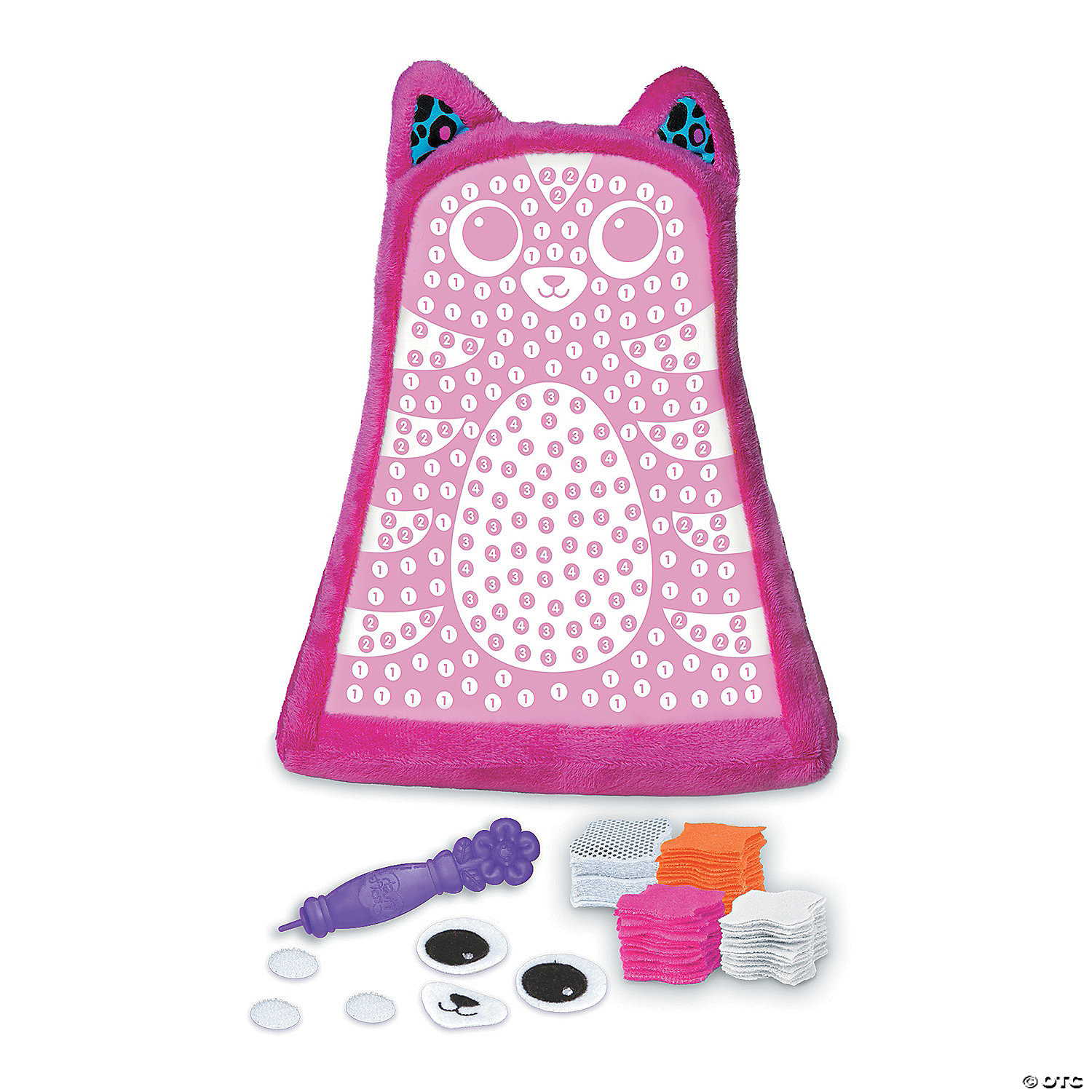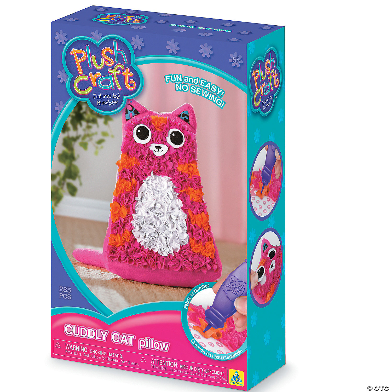 This no-sew pillow kit introduces kids to the world of crafting with a simple and safe project. Making this adorable cat pillow is easy: just match the fabric swatches to their corresponding numbers and use the PlushCraft stylus tool to push the fabric through pre-punched holes. Once the swatches have been secured, stick on embroidered decorations to complete the project. The end result is a cute, cuddly kitty pillow that kids can play with or display!• Create a cute, cuddly cat pillow• No sewing necessary• Easy-to-follow instructions• Teaches: a love for crafts, instruction following, creative thinking, concentration• Comes with: pillow, stylus tool, hundreds of cloth pieces, multiple additional accessories