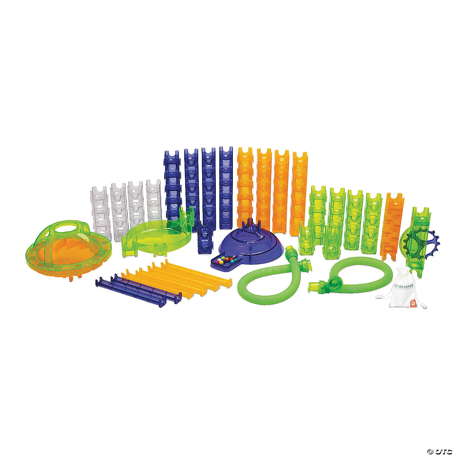 Featuring funky colors and exciting components, this updated twist on the classic Q-BA-MAZE STEAM activity is great for group building or solo builds to see if you can guess which marble will win the race. Build your maze by following the step-by-step directions for suggested designs or getting imaginative with your own unique creation, then choose a colored marble and twist the Turbo Launcher to send all the marbles shooting across the rails, zooming through the coaster tubes, bouncing down the cascade chute, spinning through the speed sprocket and racing to the finish line. Featuring endless configuration possibilities, this Q-BA-MAZE racing set inspires hours of imaginative play at home or in the classroom!• Revolutionary cubes create endless paths and artistic build possibilities• Encourages imaginative thinking and STEAM skills • Follow the step-by-step directions or experiment with your own original creations.• Includes 86 cubes, 6 straight-away rails, 2 coaster tubes, 1 turbo launcher, 1 finish line loop, 1 cascade stilt, 1 speed sprocket, 12 colored marbles in a drawstring bag• Well-crafted and durable pieces are made from phthalate-free and BPA-free ABS plastic.• Marbles are steel balls. They are not magnets.Age Recommendation: Ages 6 and up