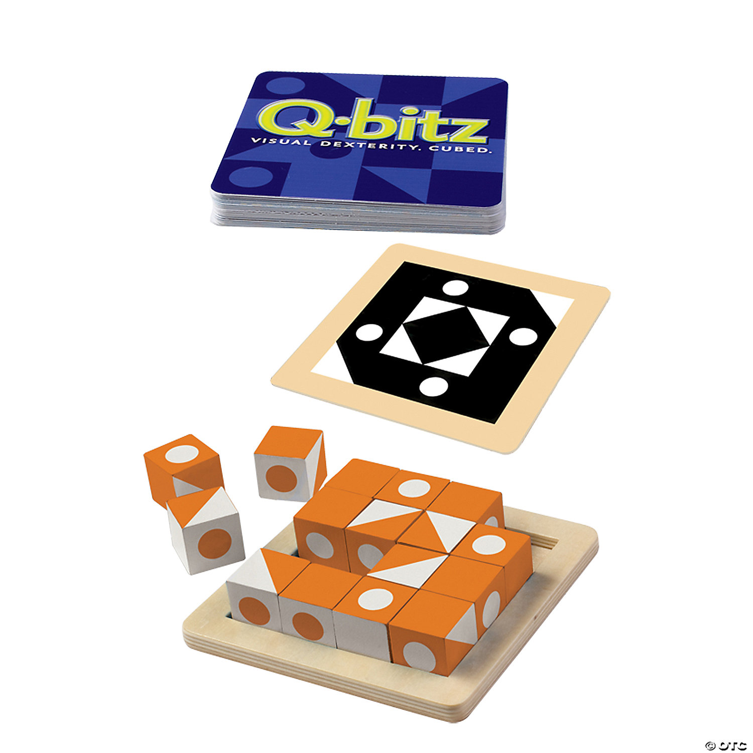 Use Q-bitz Solo as a solitaire challenge or to add another player, a new color and additional pattern cards to the original Q-bitz game. This personal-sized version of our best-selling game includes 20 new pattern cards, a wooden tray, 16 cubes and instructions, all packed in a travel-friendly tin box.