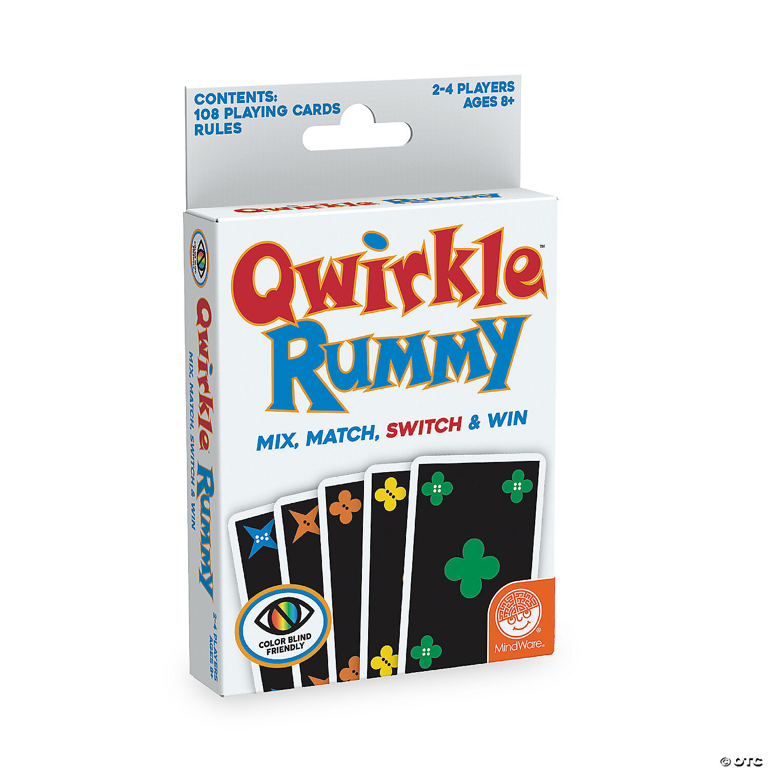 Now everyone can get in on the fun! Qwirkle Rummy, the Color Blind Friendly Edition, plays like a mix of Qwirkle and Rummy, with cards that are easy to differentiate for players with colorblindness. In addition to the standard Qwirkle colors, these cards feature dice-like dots in the corner shapes. Players match shapes or the number of dots to create sets. Any player can add to any set or switch cards in the sets, but the real payoff happens when a set of all 6 is completed and a Qwirkle is scored. The player with the most Qwirkles at the end of the games is the winner. It’s the perfect combination of skill and chance that all ages and abilities can play and enjoy!• Color-blind-friendly version of the classic Qwirkle!• Easy for beginners but challenging enough for the most competitive teens and adults• Teaches young players shapes, forward thinking, early strategy and problem-solving skills• Sharpens older players’ strategic thinking – a great game to stretch and train your brain!• For 2 to 4 players• Includes 108 patterned Qwirkle cards in a travel-sized box