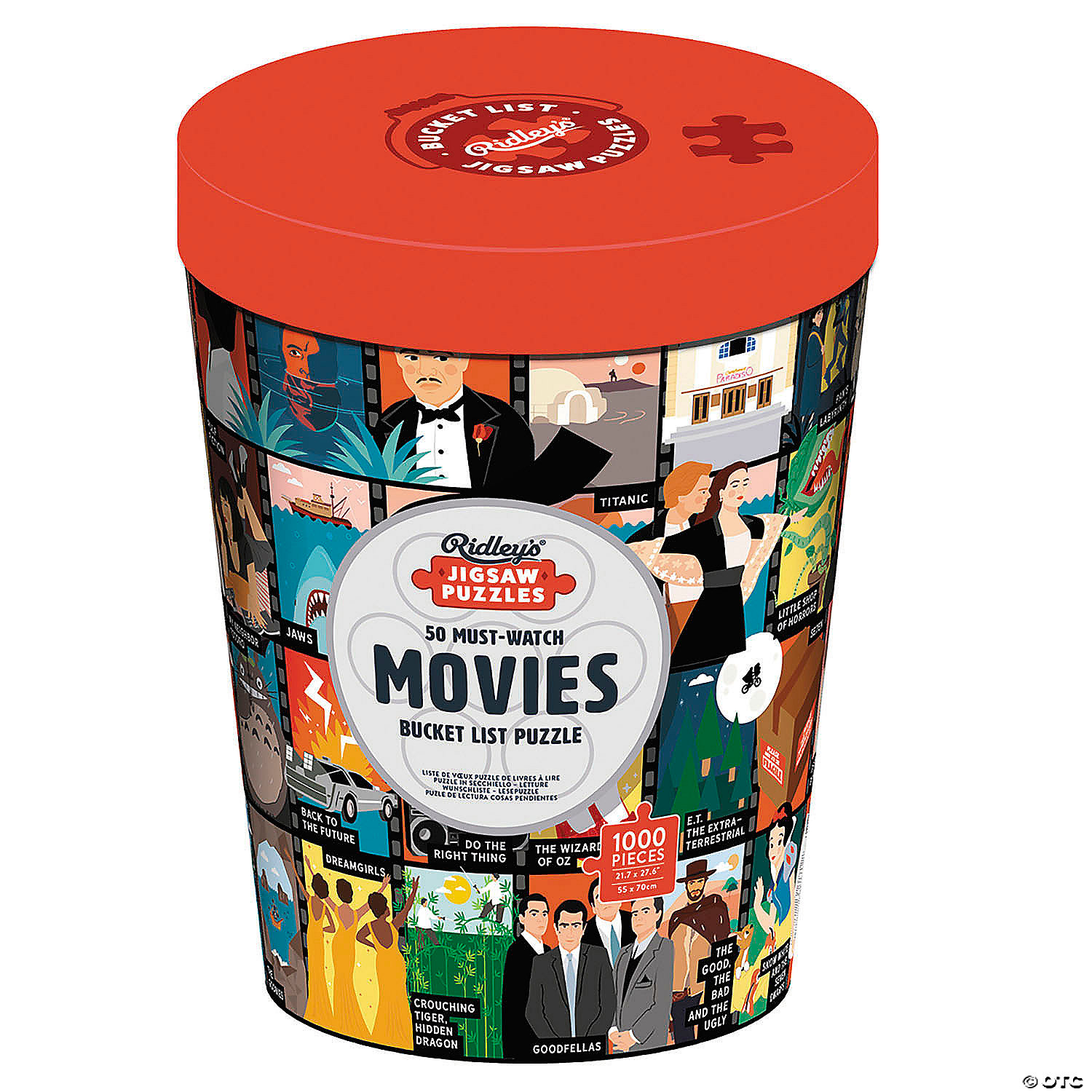 Lights, camera, puzzle! Dive into cinematic nostalgia with Ridley’s Must-Watch Movies Bucket, a 1,000-piece jigsaw celebrating iconic films through a vibrant “bucket of movie titles” design. Perfect for movie lovers, pop culture fans, and puzzle enthusiasts alike — this set offers both challenge and delight in one box.